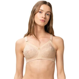 Podprsenka značky Triumph, model 10166213 Doreen X. Svislé kostice na bocích, nastavitelná ramínka, kovové háčky na ramínkách, zapínání na háčky a očka, zadní díl, vyrobeno z 80% polyamidu, 13% elastanu, 7% bavlny, ženská barva.