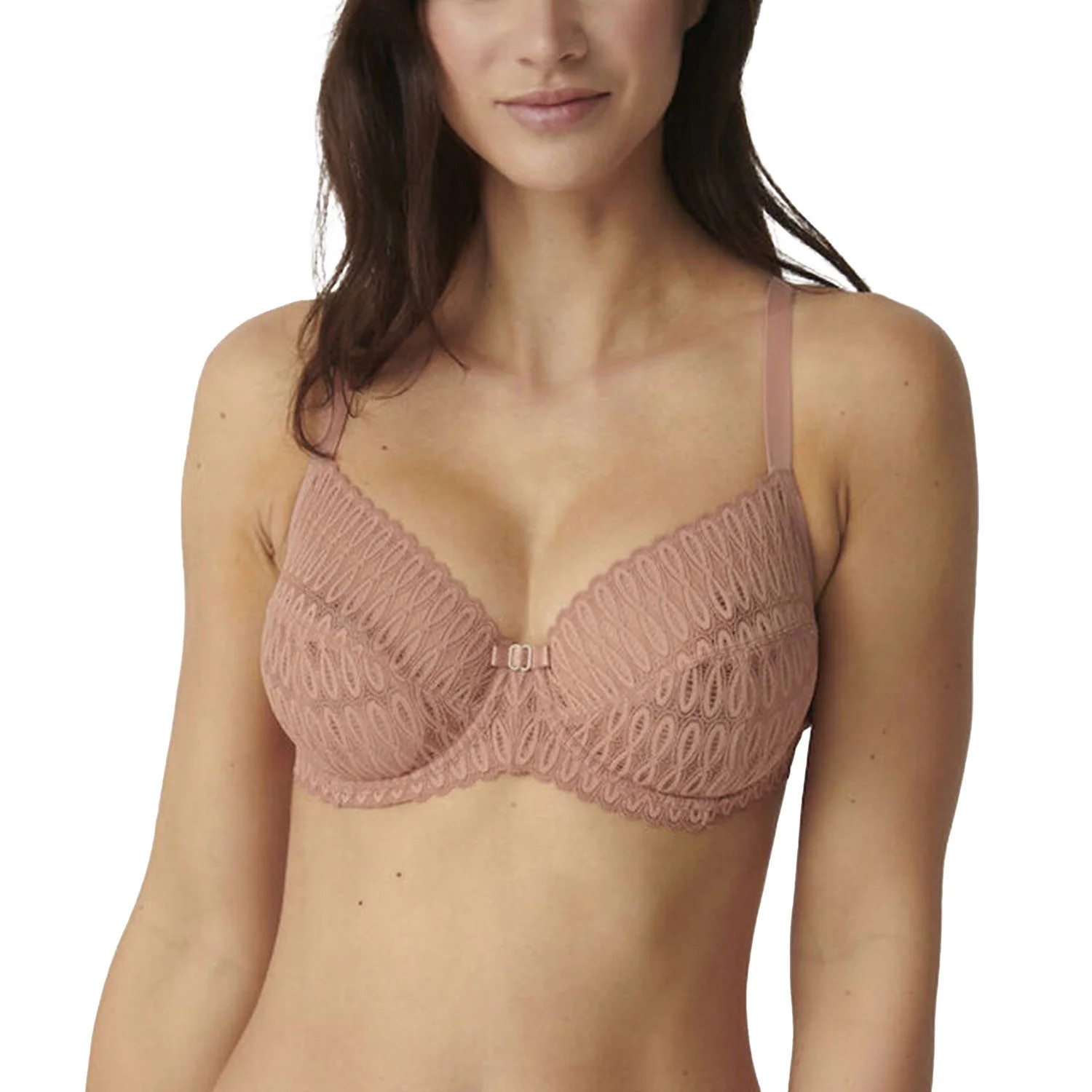 Podprsenka od Triumph. Model 10208015 Aura Spotlight W. Má dráty, které prsa vhodně tvarují. Výrobek má nastavitelné popruhy bez možnosti odepnutí. Kovové háčky na popruh. Podprsenka se zapínáním na háčky a oči. Upevňovací bod: vzadu. Tři řady svislých háčků. Tři stupně horizontálních háčků. Výrobek je vyroben z 66 % z polyamidu, 17 % z polyesteru a 17 % z elastanu. Výrobek pro ženy. Boky vyztužené látkou.