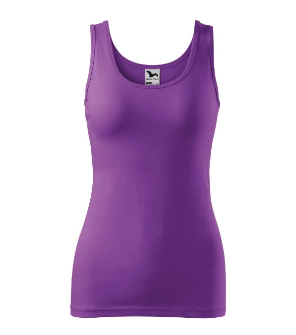 strečový materiál udržující stálost tvaru přiléhavý střih s bočními švy hlubší kulatý výstřih průkrčník a průramky lemovány vrchovým materiálem širší ramínka