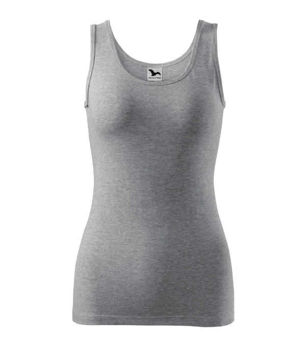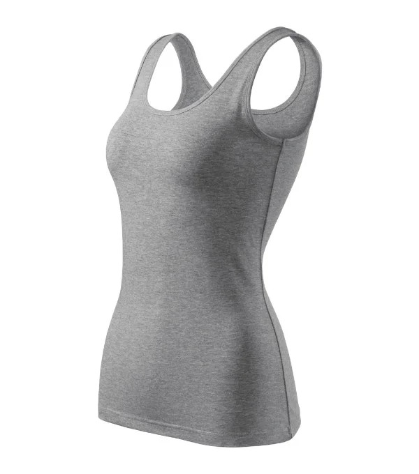 strečový materiál udržující stálost tvaru přiléhavý střih s bočními švy hlubší kulatý výstřih průkrčník a průramky lemovány vrchovým materiálem širší ramínka