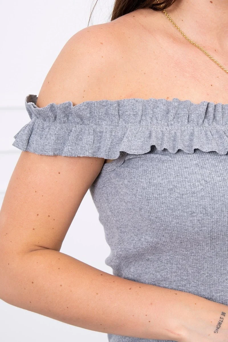model 18744803 halenka s volánky šedá - K-Fashion