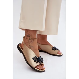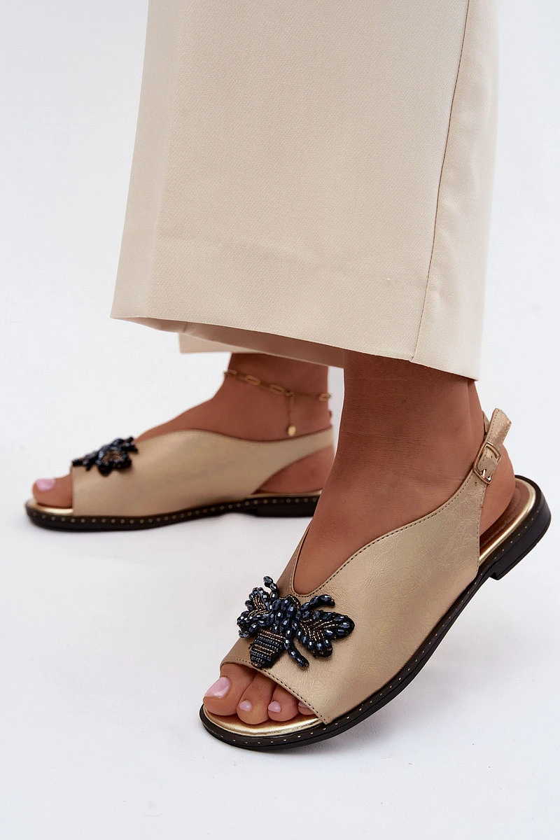 Třpytivé dámské sandály s ozdobou Ploché zlaté Russona