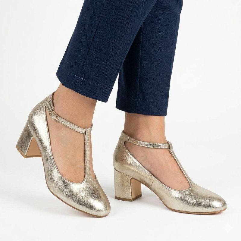 Třpytivé zlaté lodičky s páskem Mascara 834283