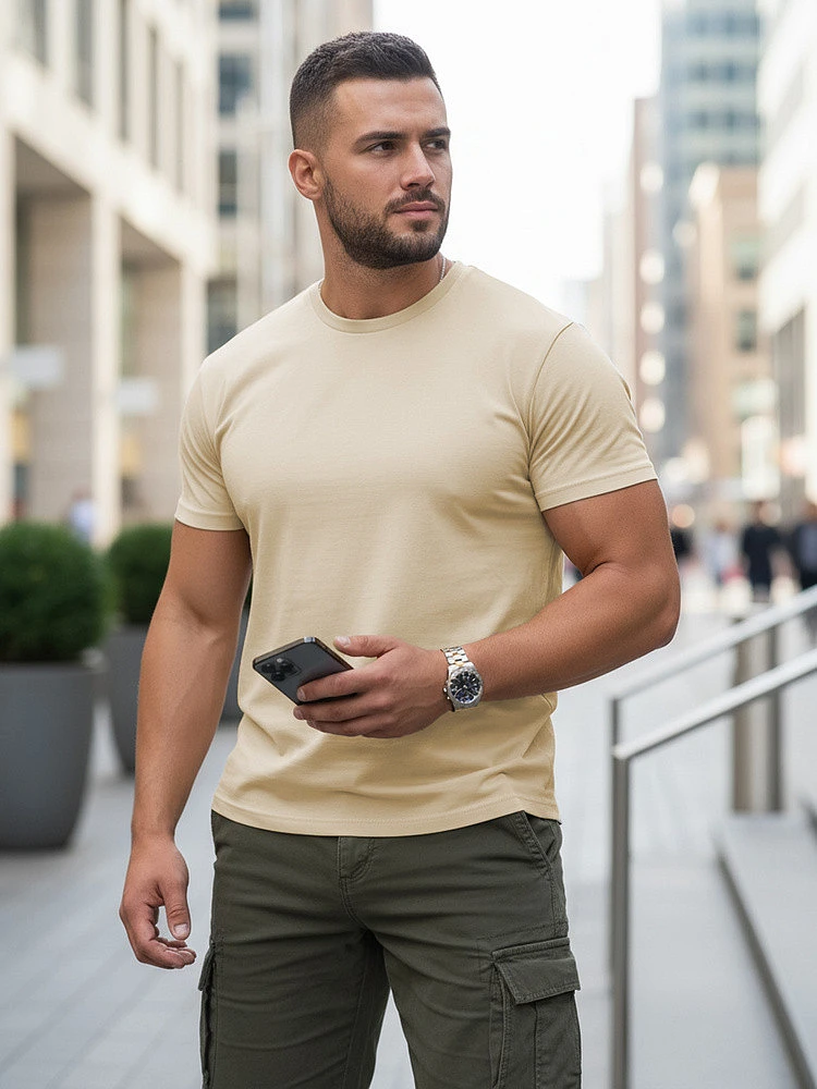 T-shirt męski klasyczny RX5676 beżowy