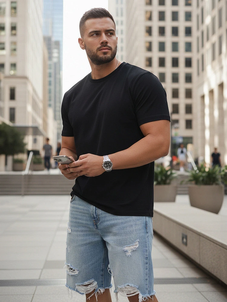 T-shirt męski klasyczny RY5671 czarny