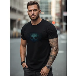 T-shirt męski z nadrukiem czaszki w nowoczesnej, lekko minimalistycznej odsłonie nadaje stylizacji wyrazisty, ale stonowany charakter. Grafika utrzymana w chłodnej tonacji przyciąga uwagę i dobrze komponuje się z codziennymi zestawami. Klasyczny fason sprawia, że model łatwo dopasować do różnych elementów garderoby. Bawełniany materiał zapewnia wygodę noszenia przez cały dzień.