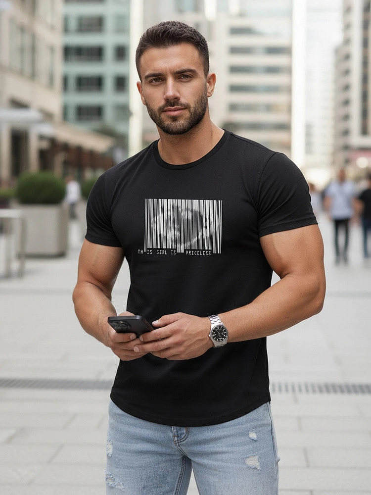 Stylowa koszulka z nowoczesnym nadrukiem stanowi ciekawy element codziennych stylizacji. Wykonana z wysokiej jakości bawełny zapewnia komfort noszenia i odpowiednią przewiewność. Dopasowany krój dobrze podkreśla sylwetkę, zachowując swobodę ruchów. Minimalistyczna forma z wyrazistym akcentem graficznym wpisuje się w miejski styl.