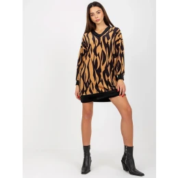 Tmavě béžové a černé velurové šaty s potiskem od RUE PARIS .