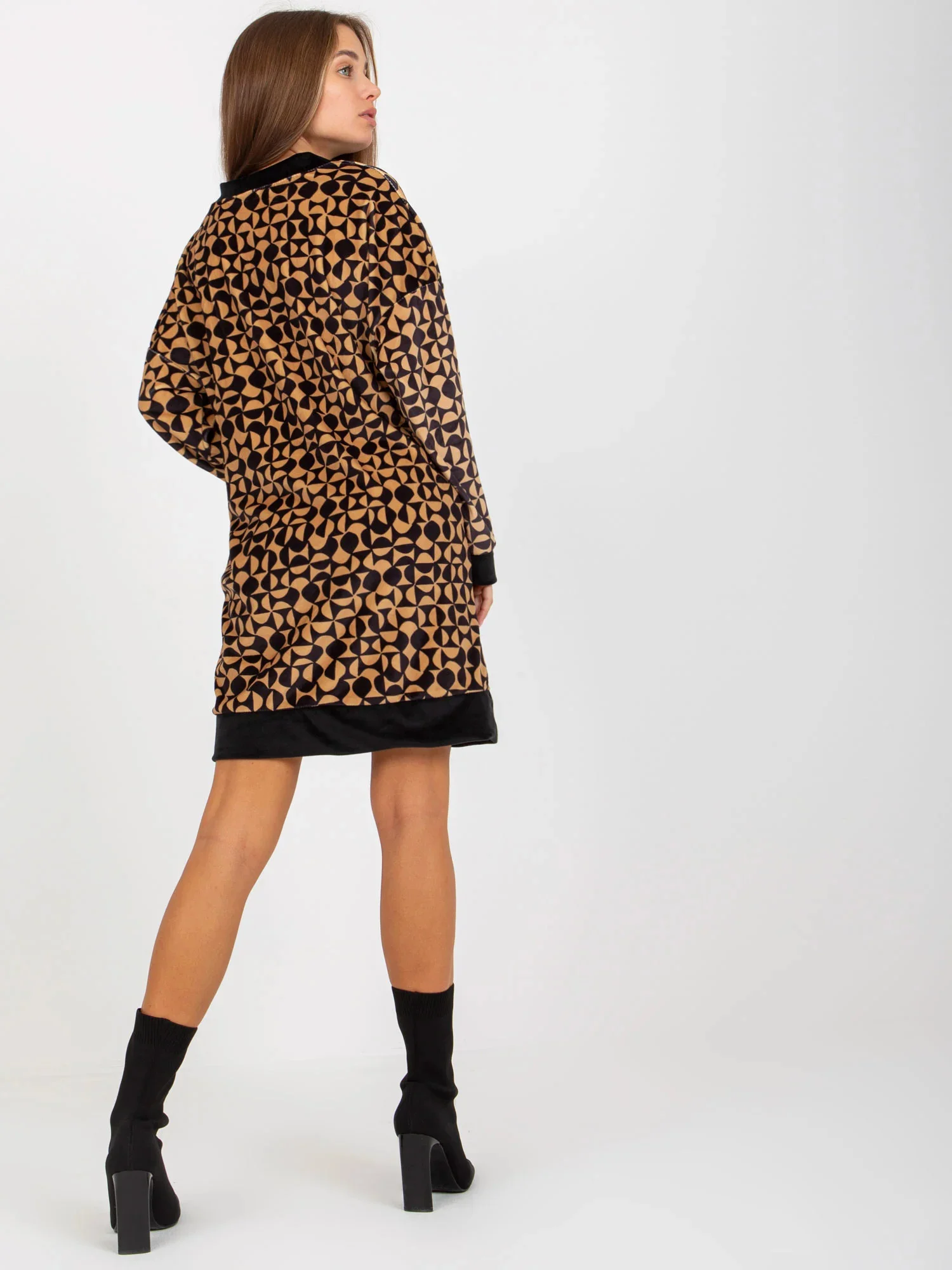 Rozměry šatů ve velikosti S/M měřené na plocho: šířka v podpaží - 60 cm, délka rukávu - 58 cm, celková délka - 86 cm.