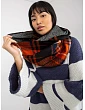 Námořnicky modrý a oranžový kostkovaný potisk komínu .
