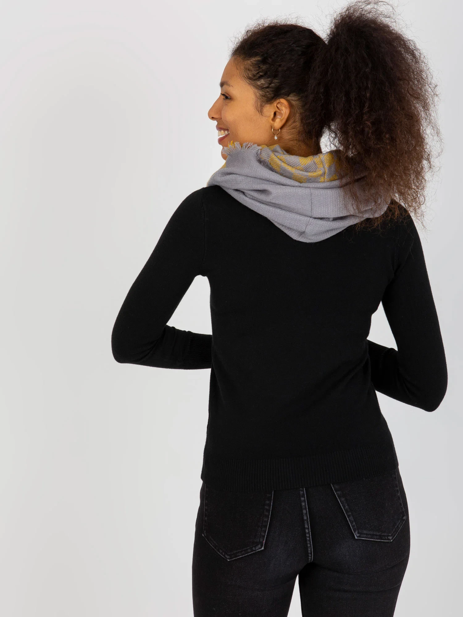 Šedožlutý dámský zimní komín s vlnou .