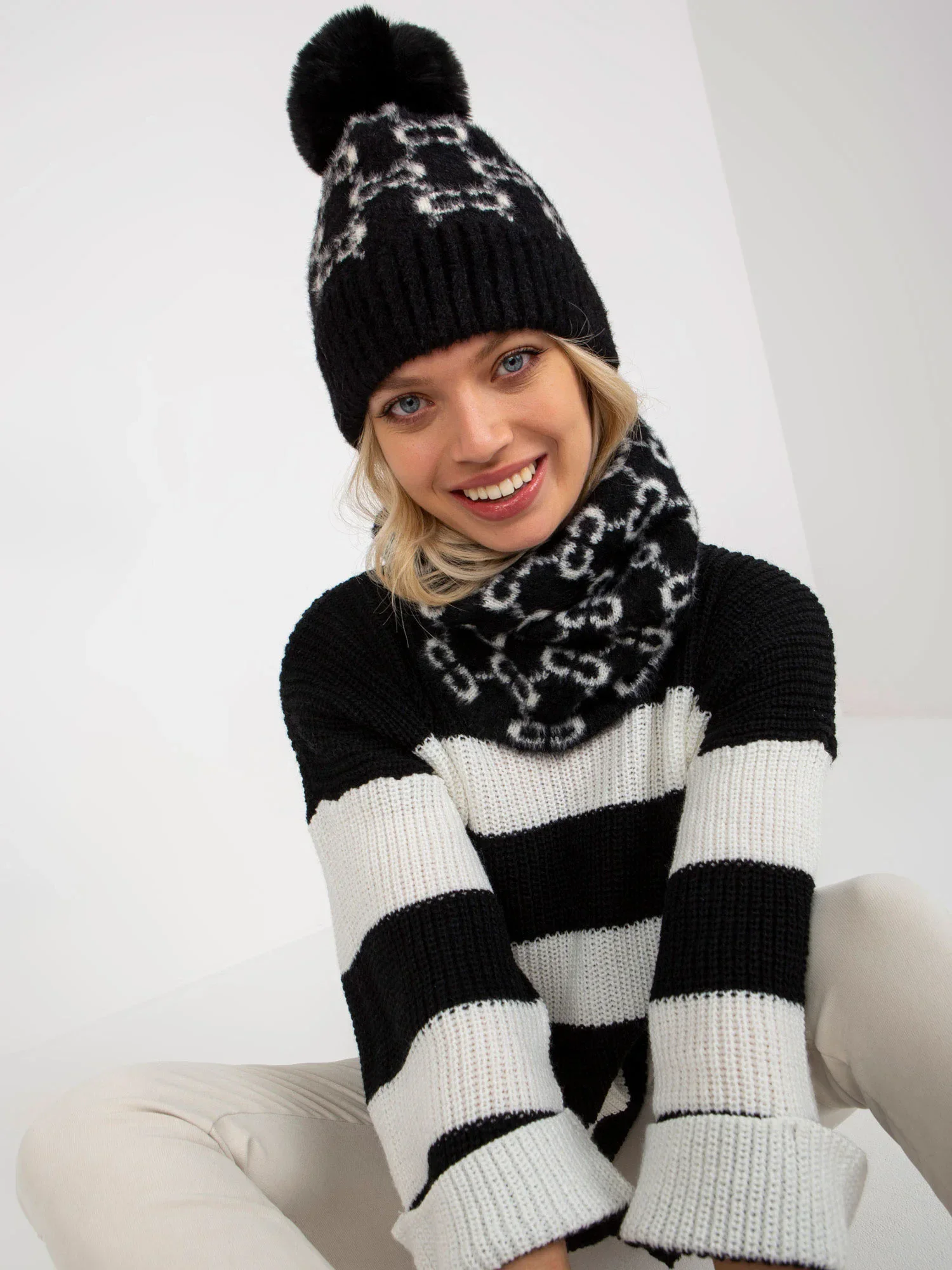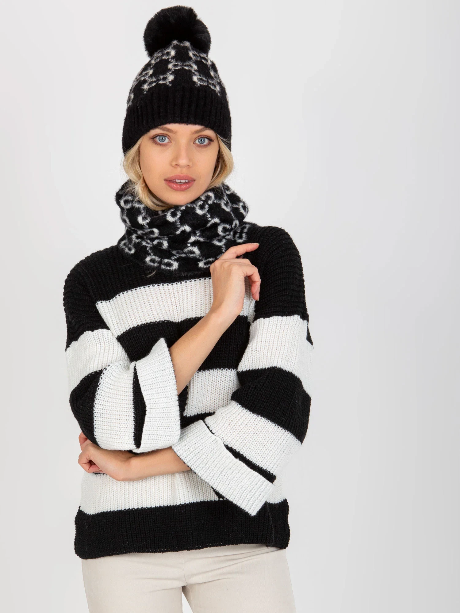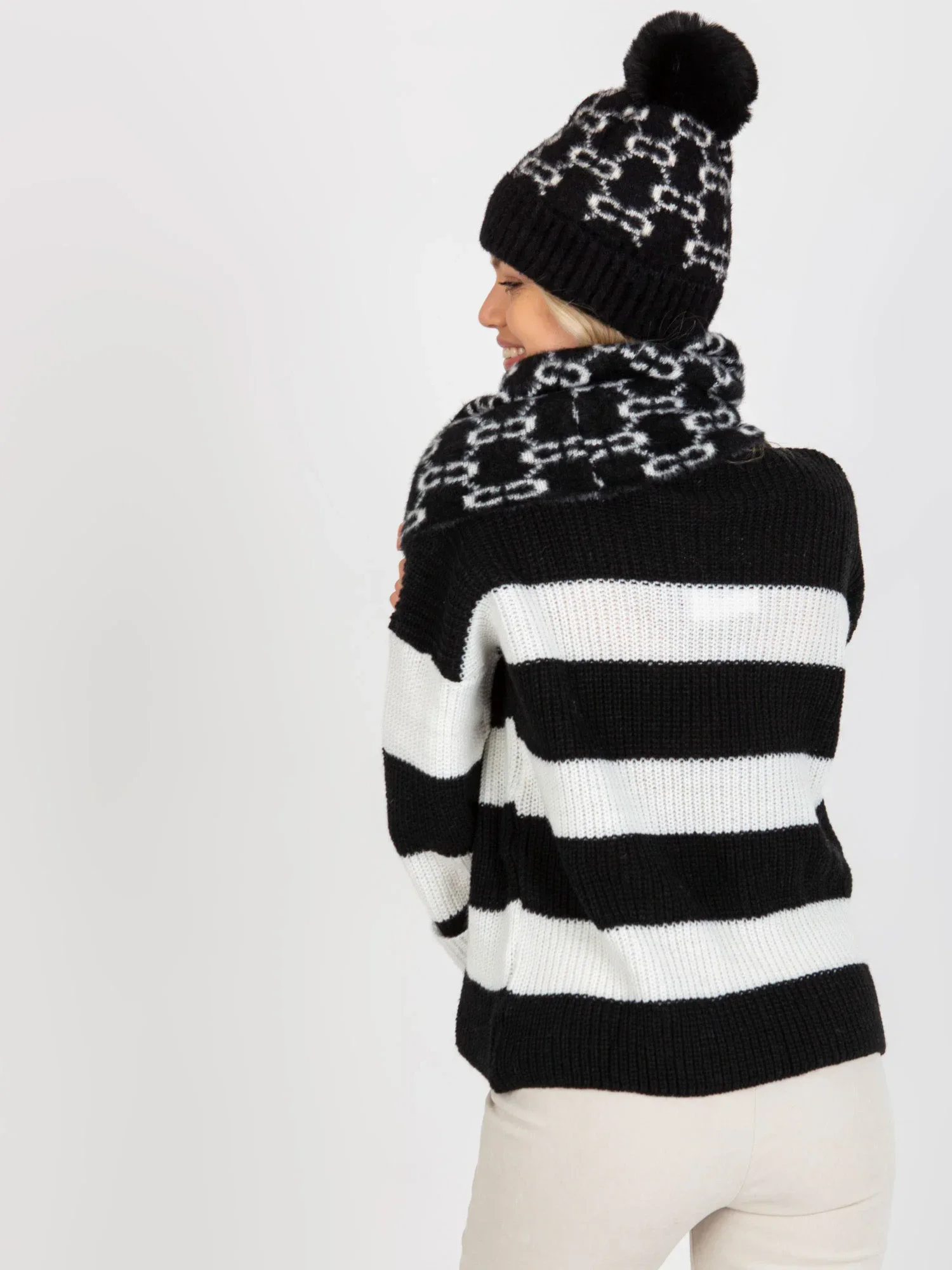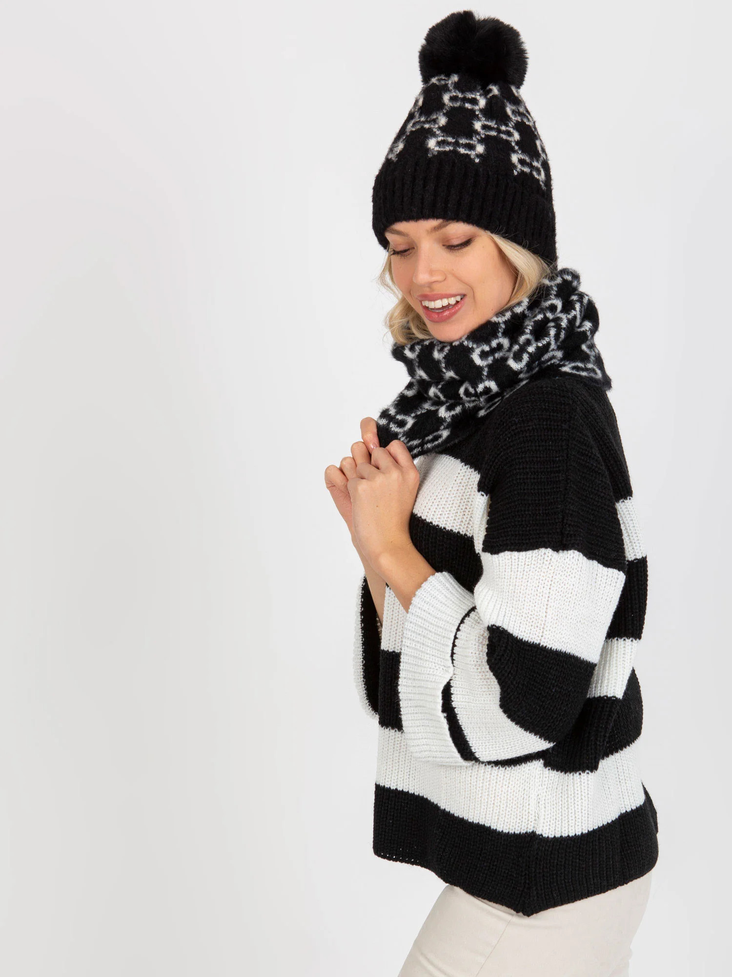 Černobílý dámský vzorovaný komín .