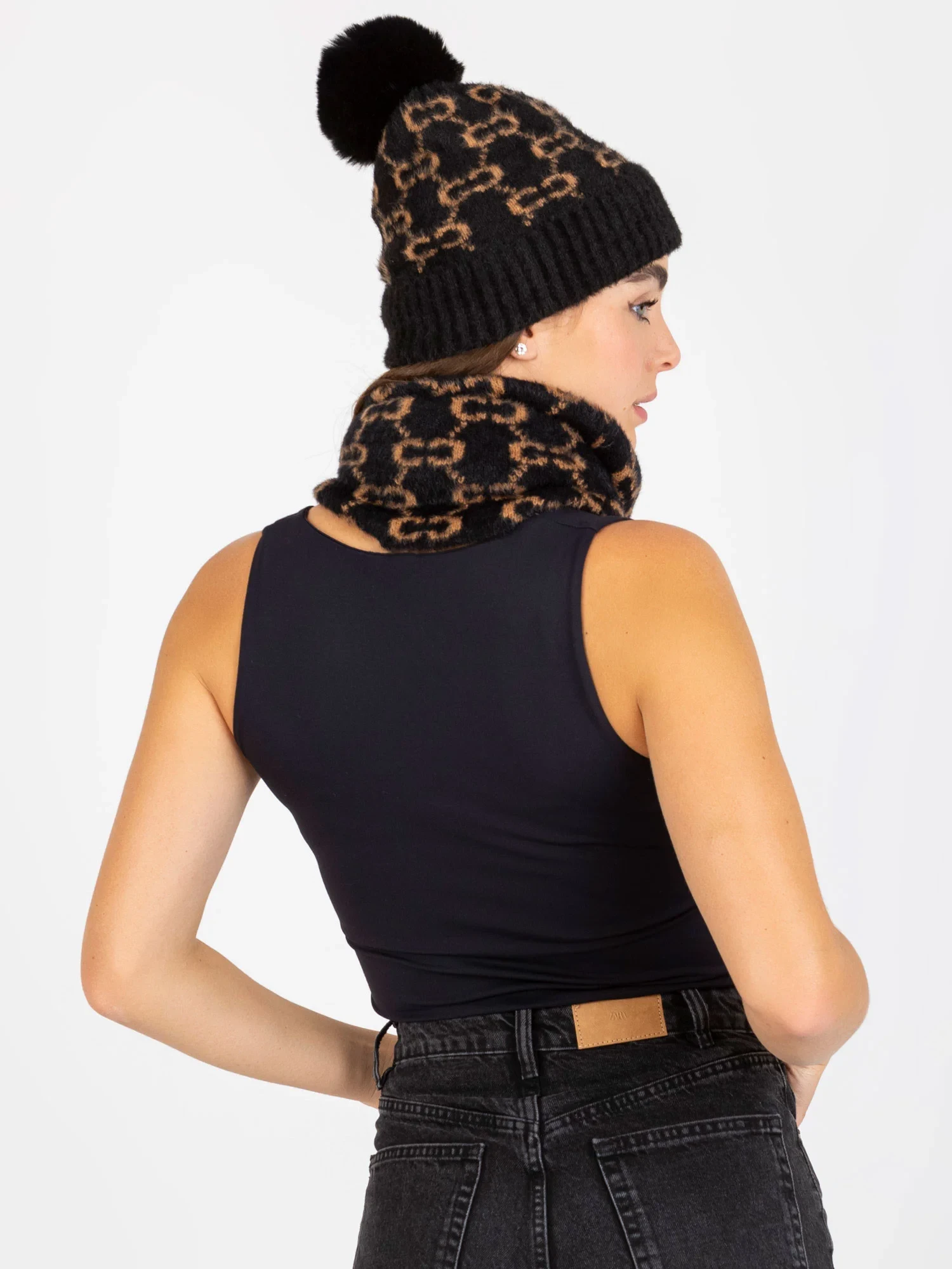 Komín s černým zimním vzorem .