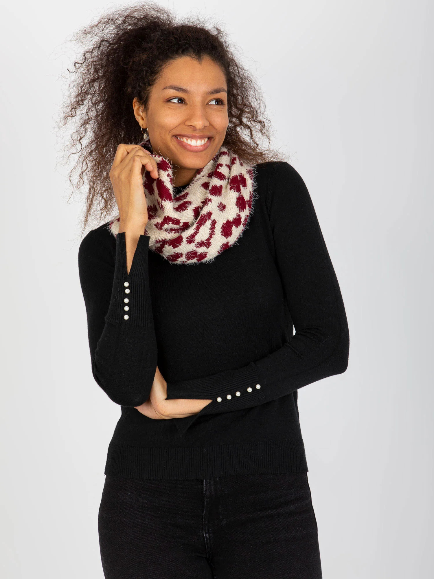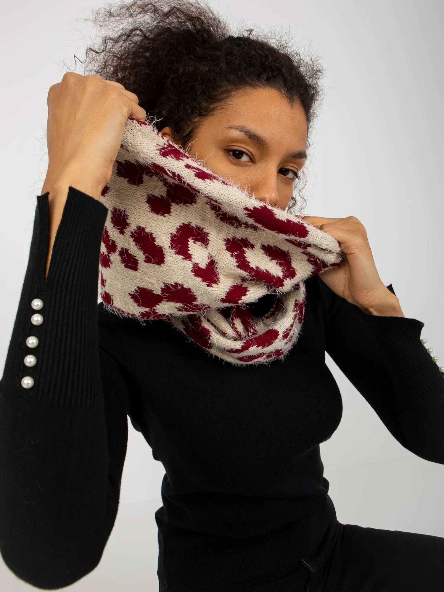 Světle béžové a vínové dámské vzorované komínové .
