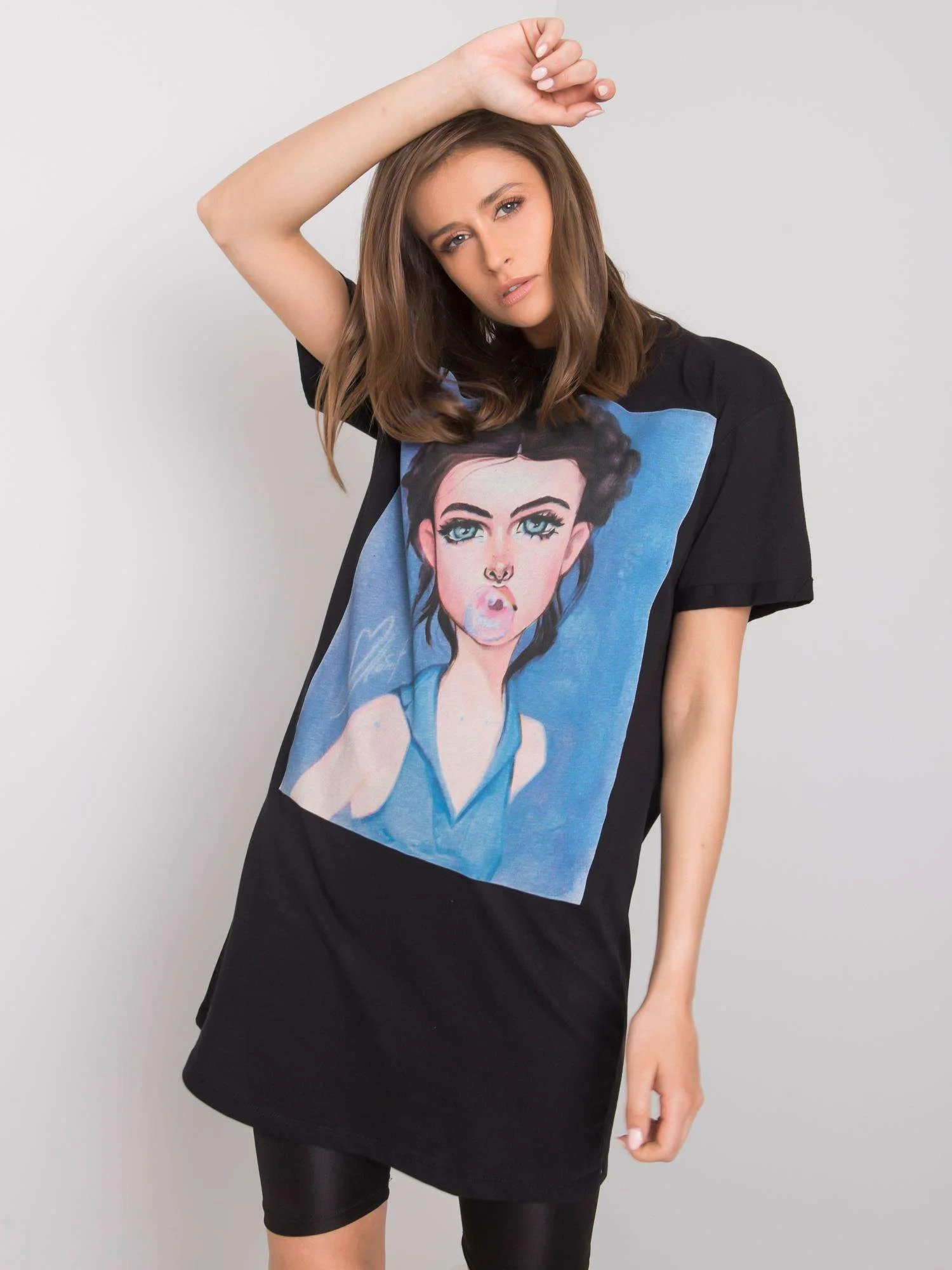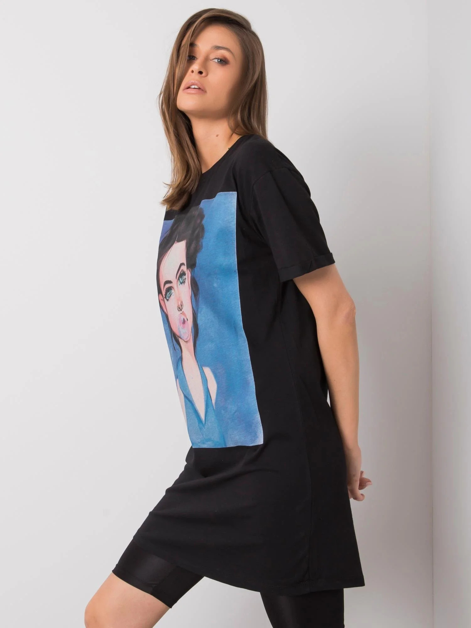 SUBLEVEL Černá bavlněná tunika s potiskem.