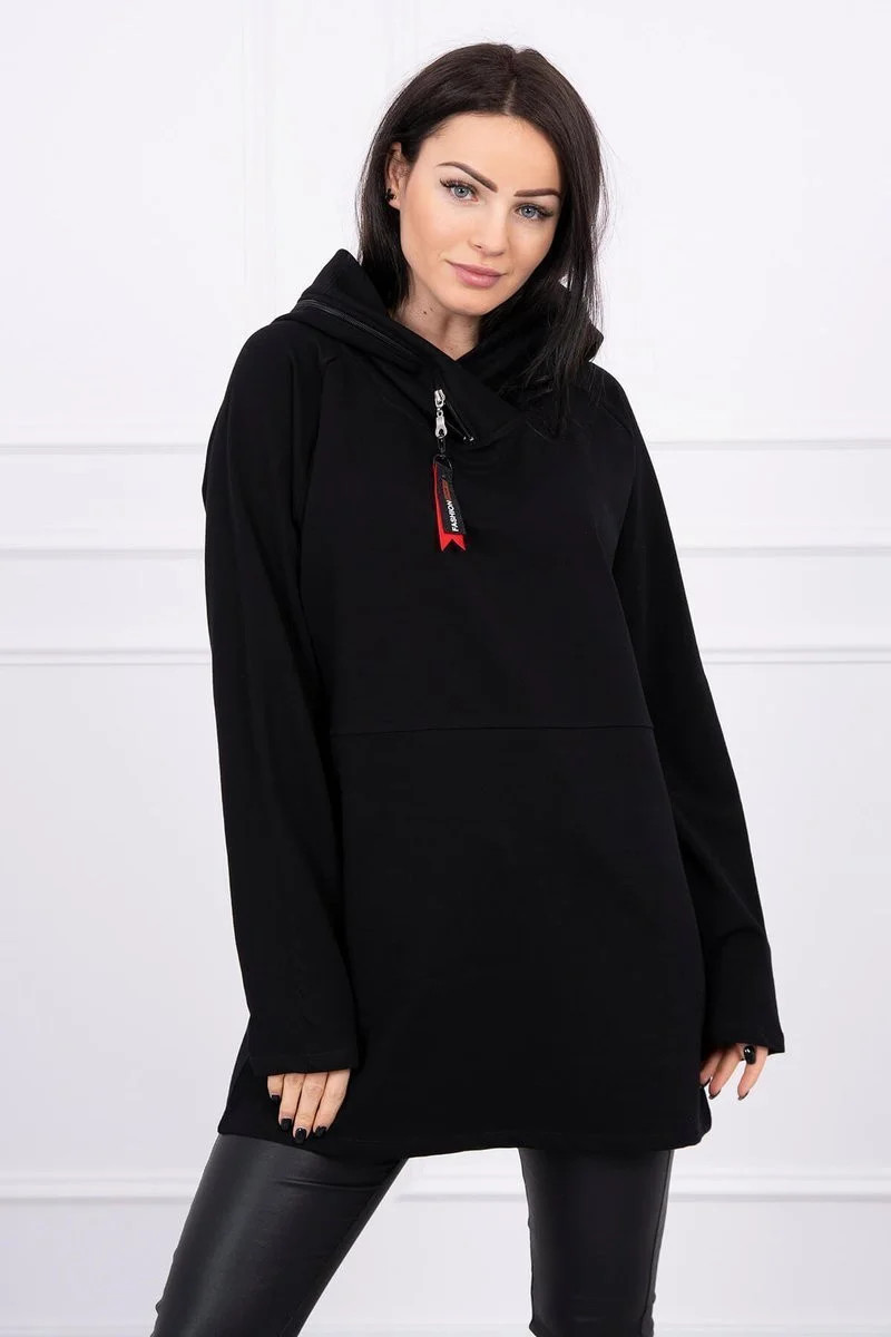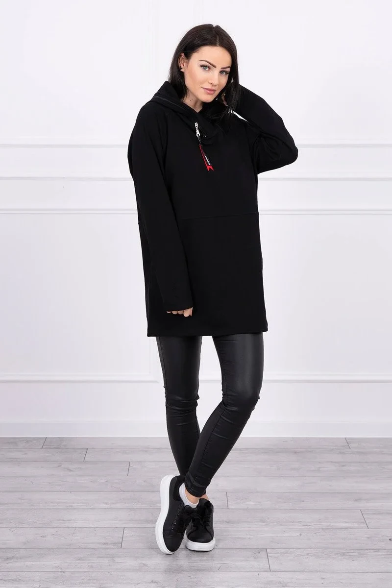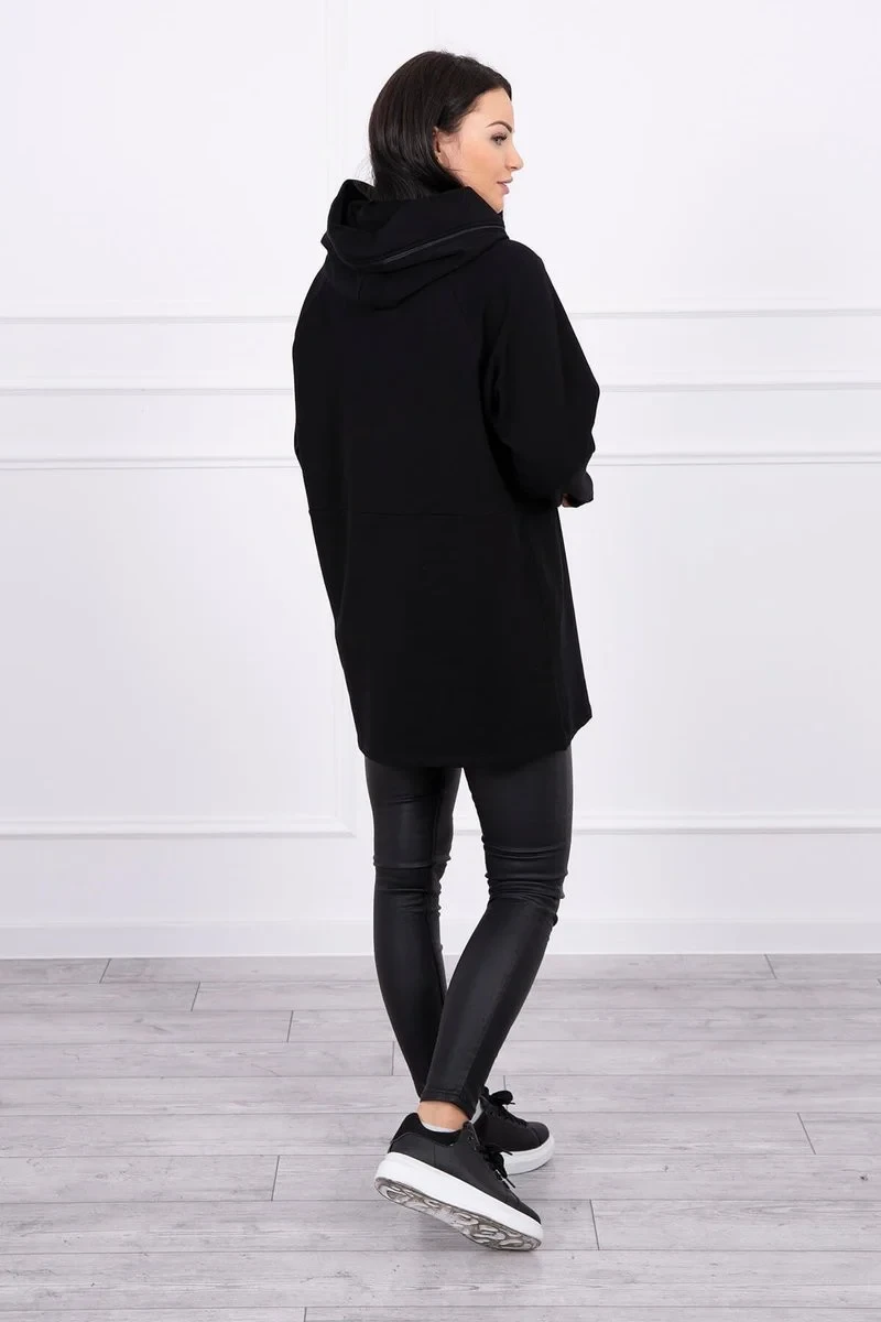 Tunika na zip s kapucí Oversize černá