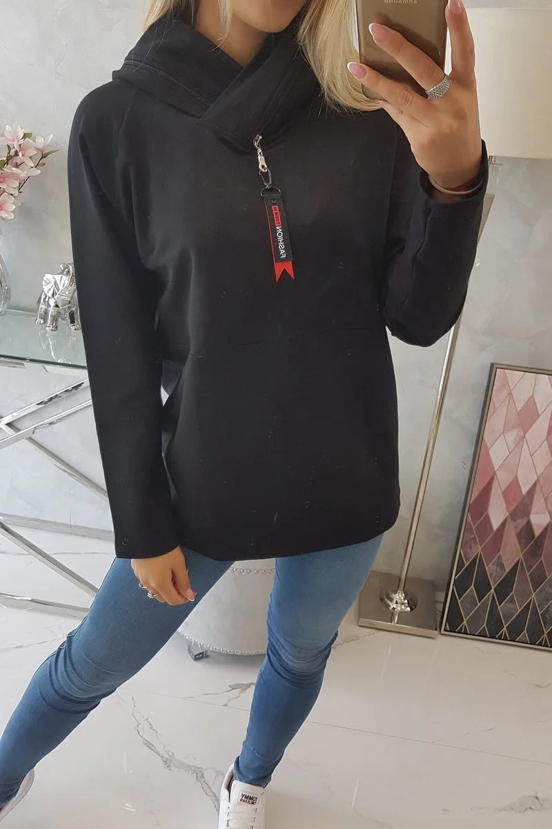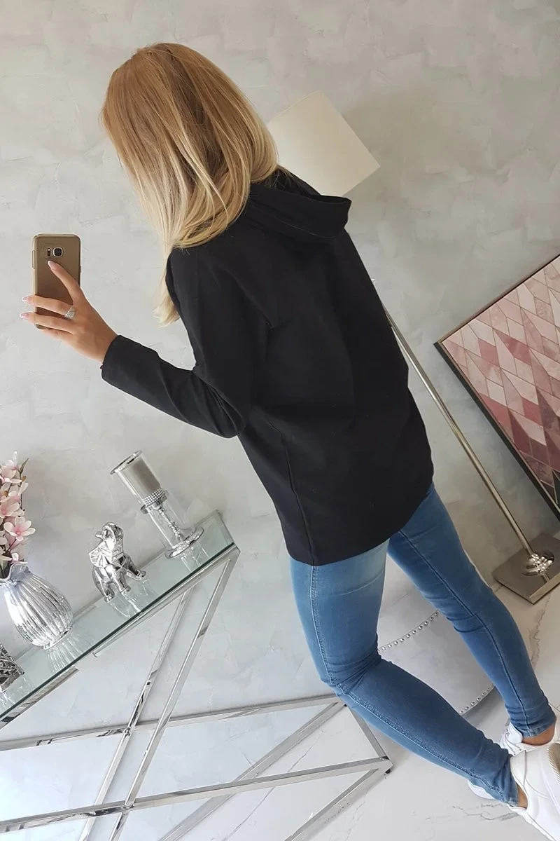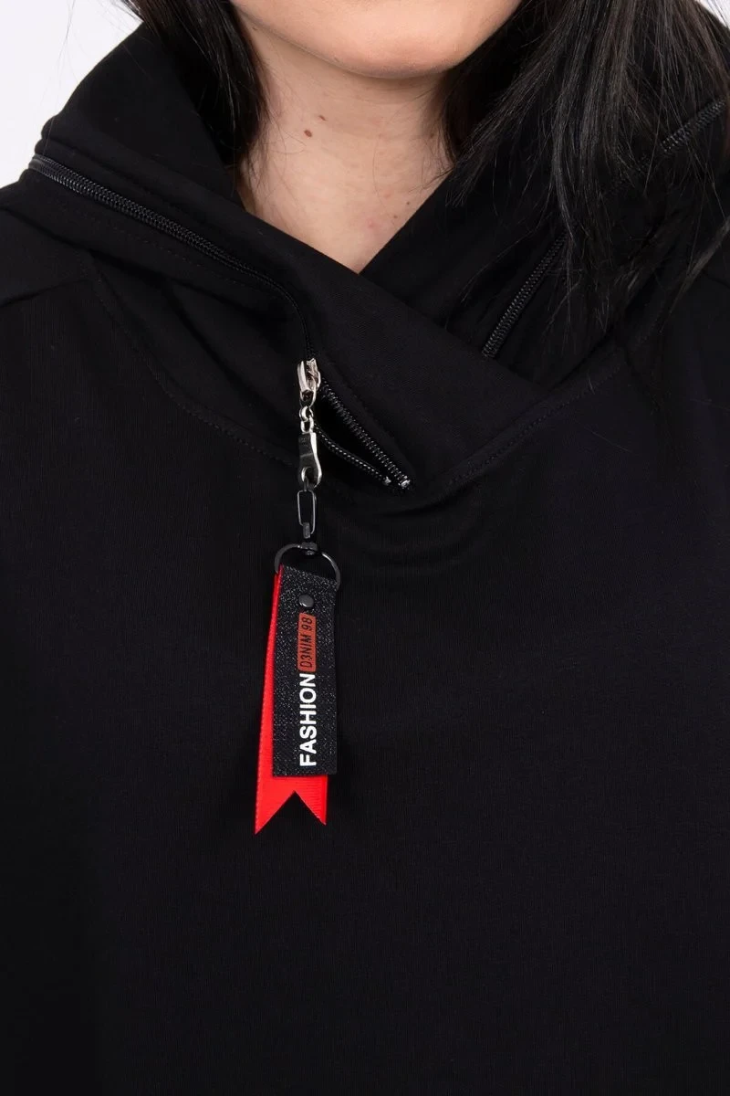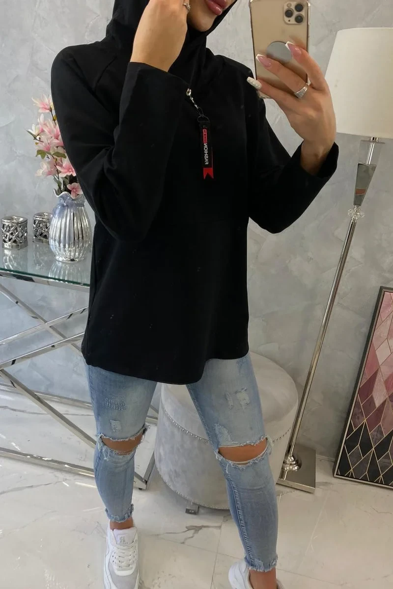 Tunika na zip s kapucí Oversize černá