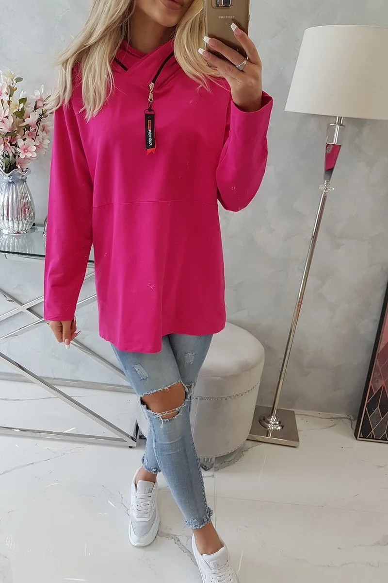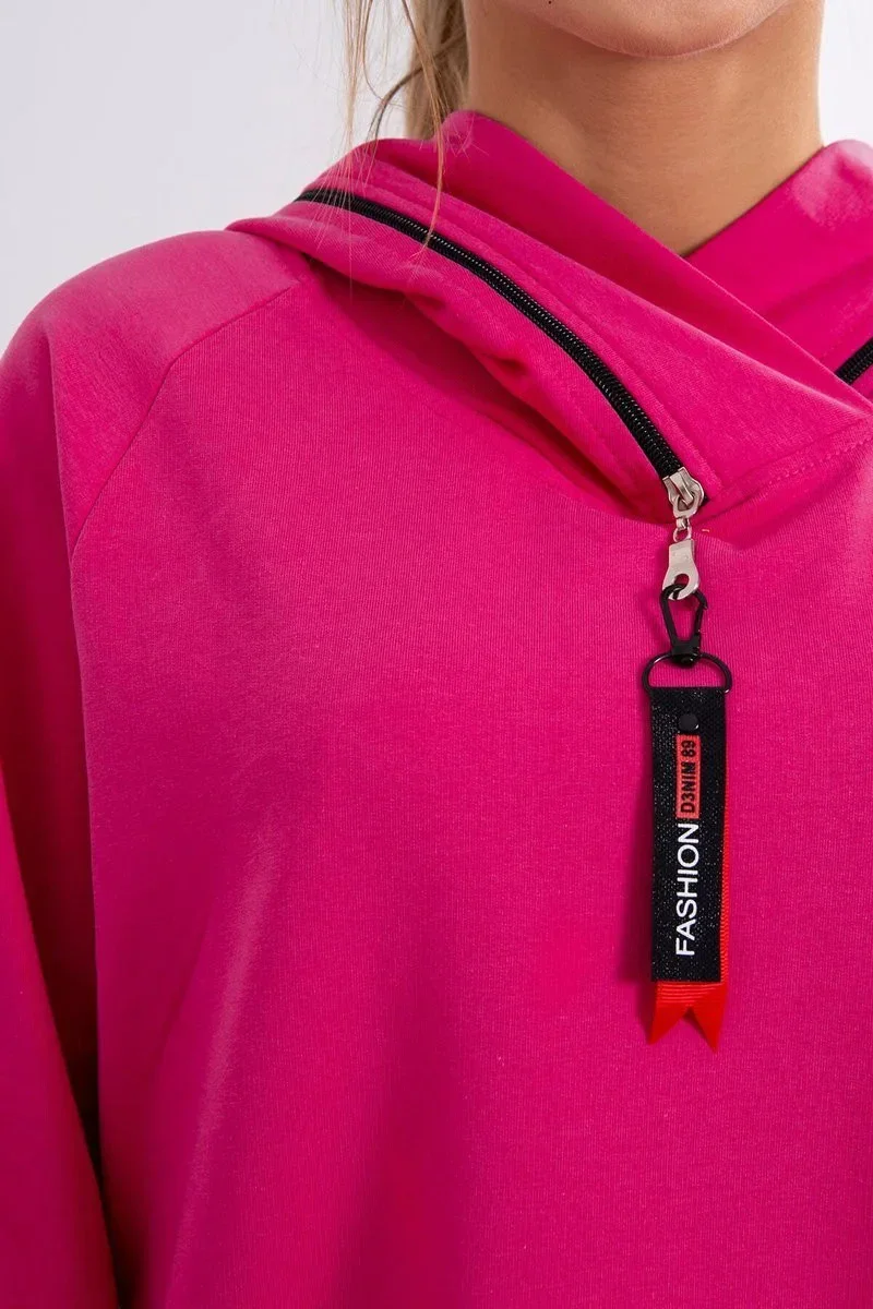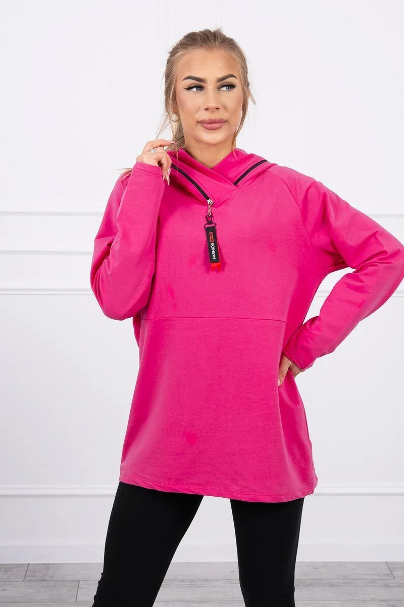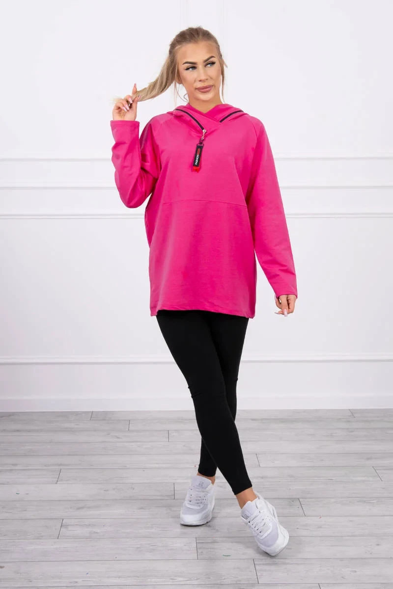 Tunika na zip s kapucí Oversize fuchsiová