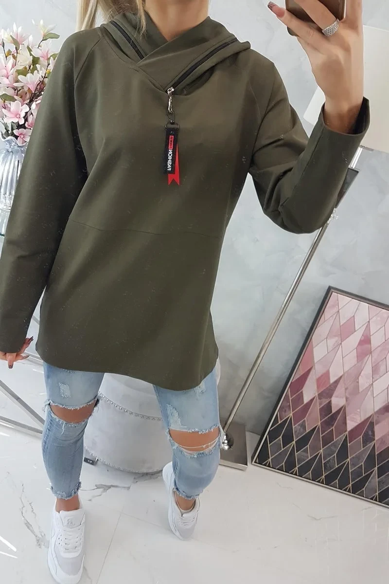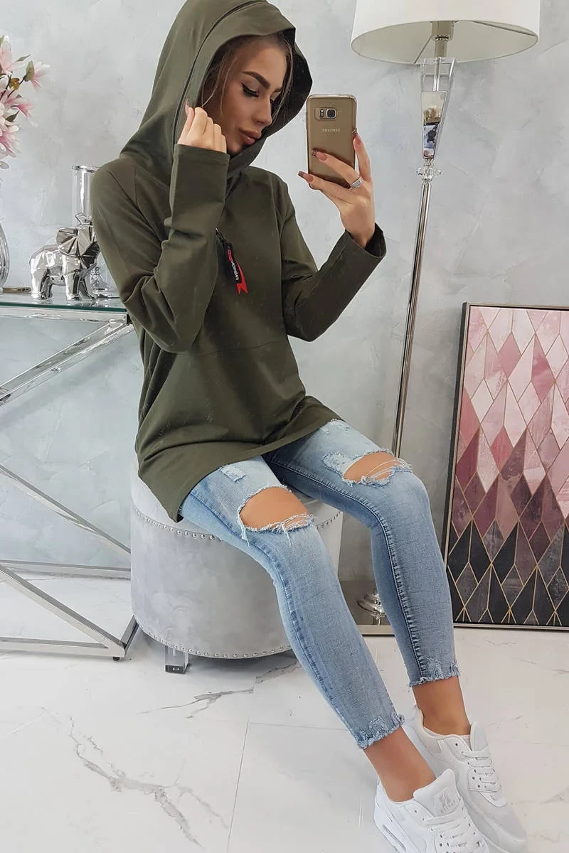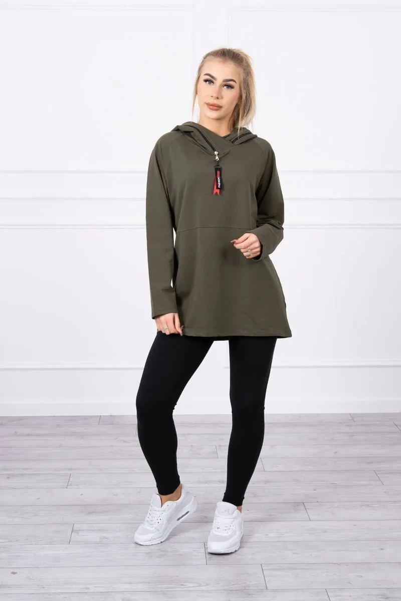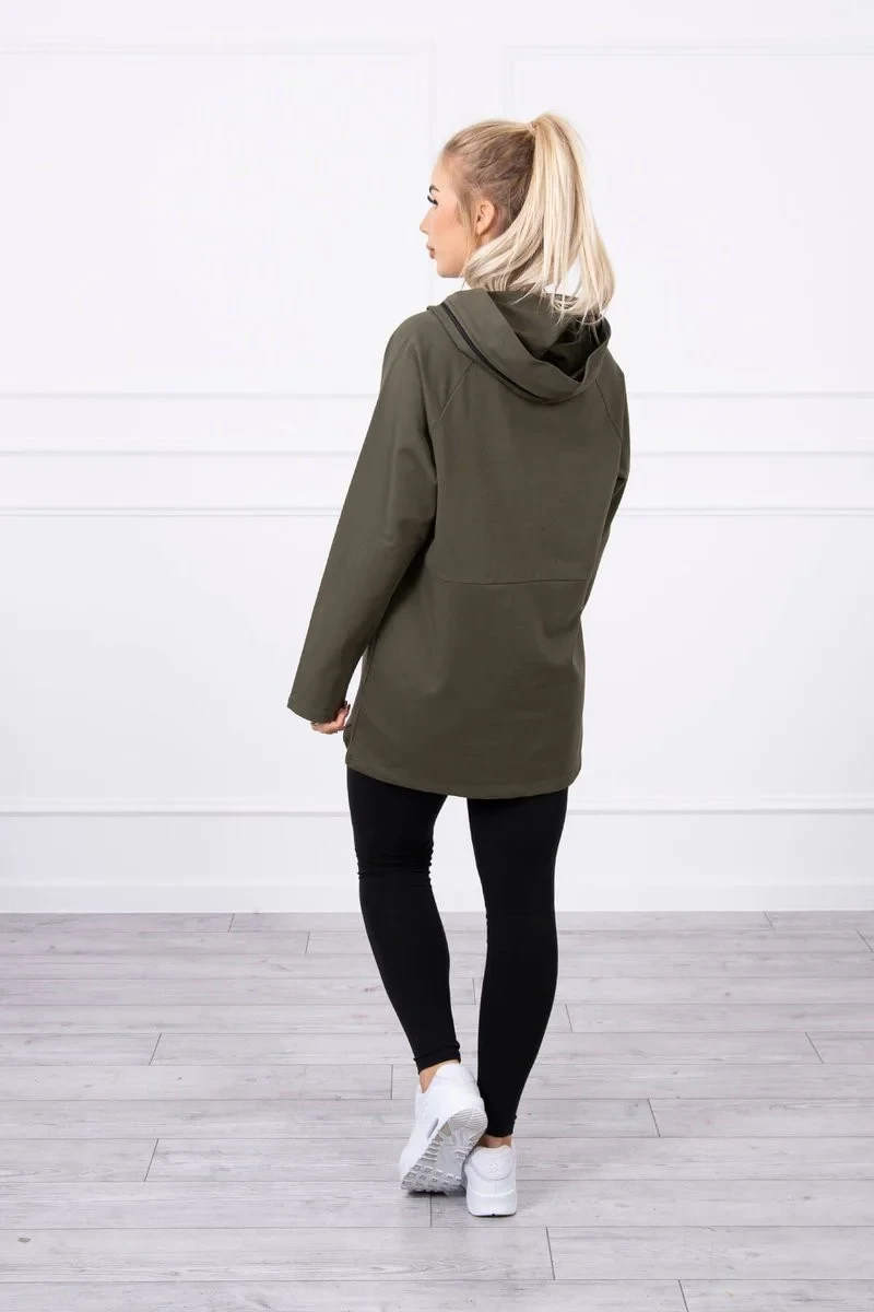 Tunika na zip s kapucí Oversize khaki barva