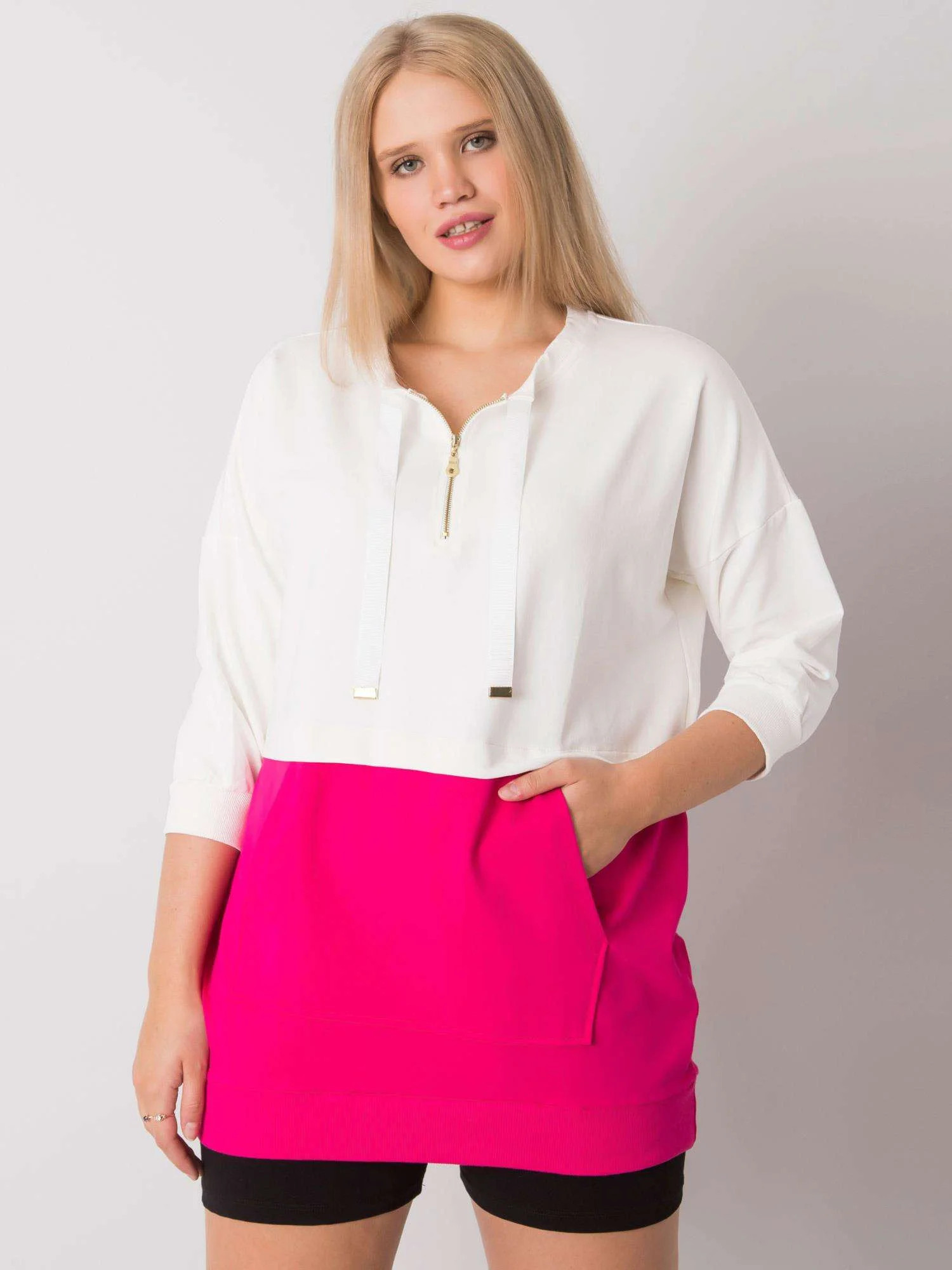 Dámská plus size tunika v barvě ecru-fuchsiové.