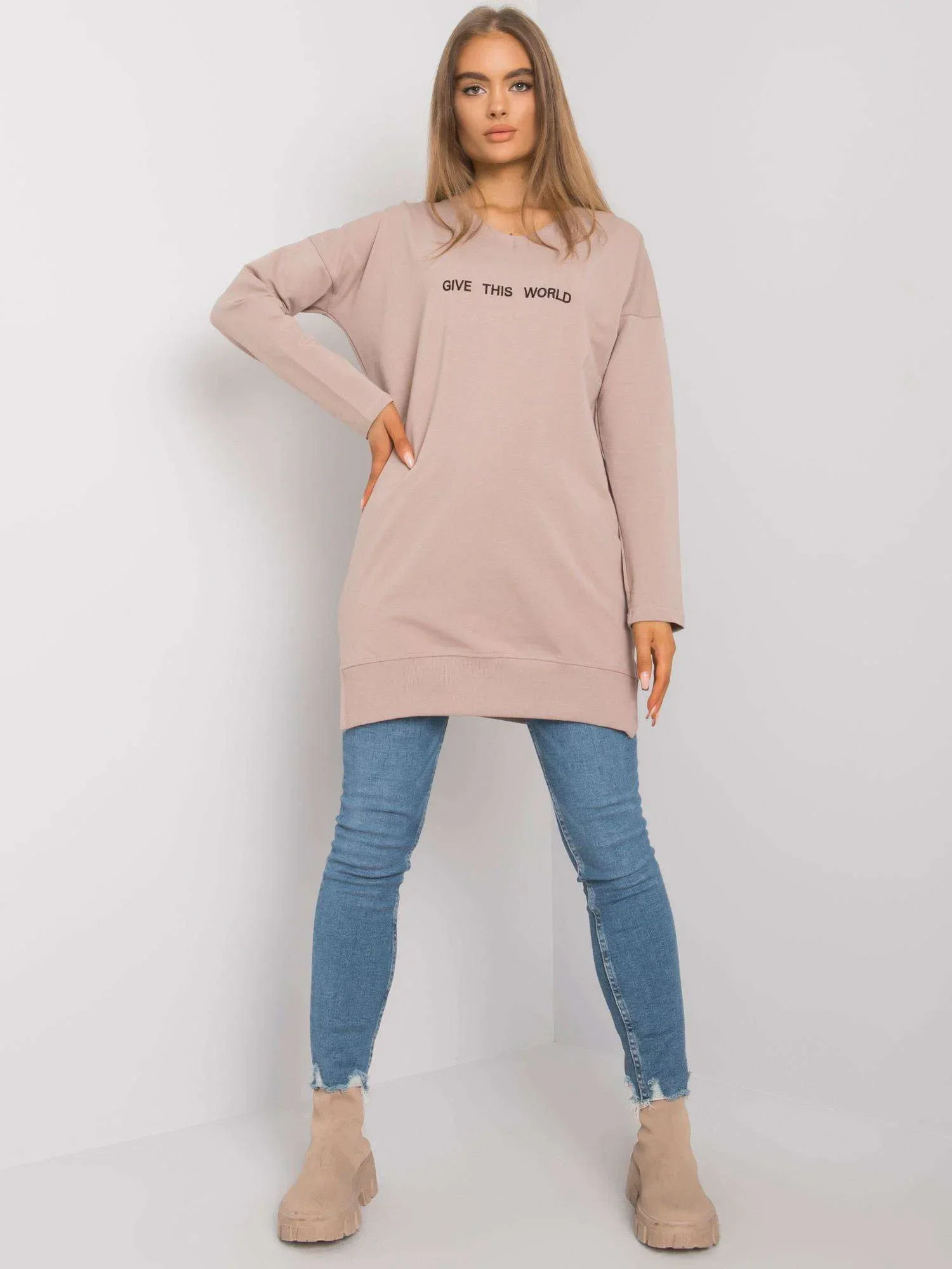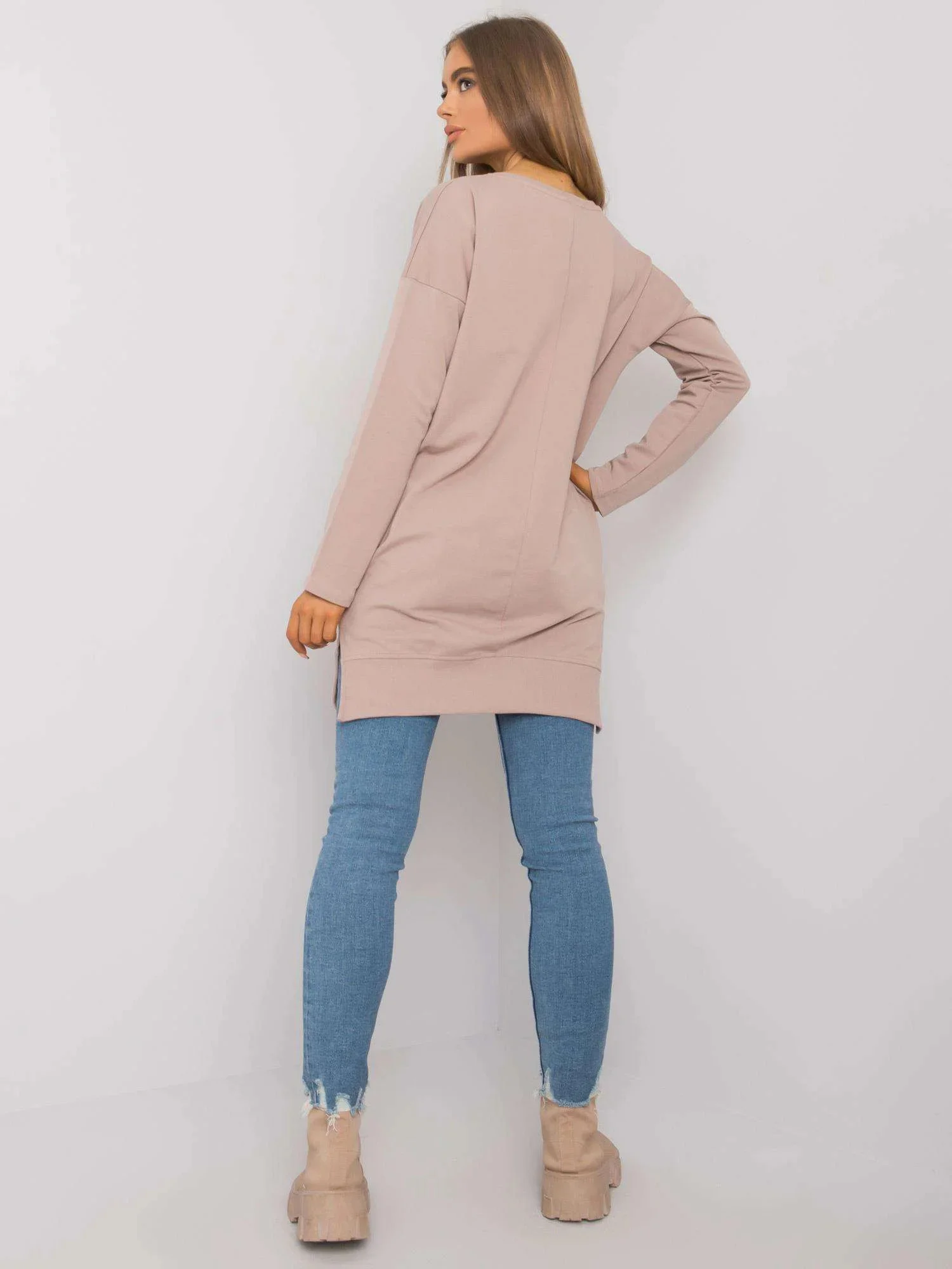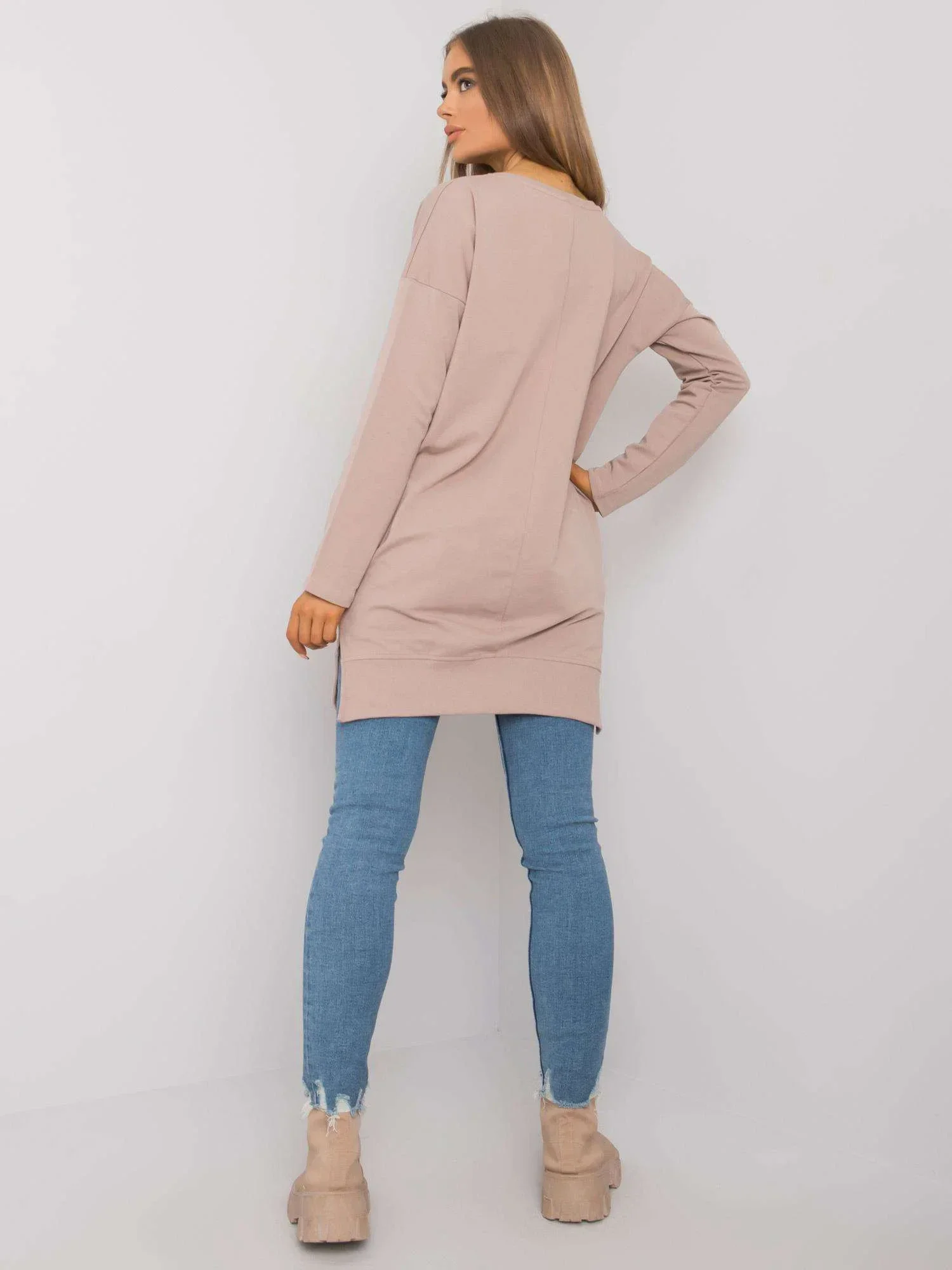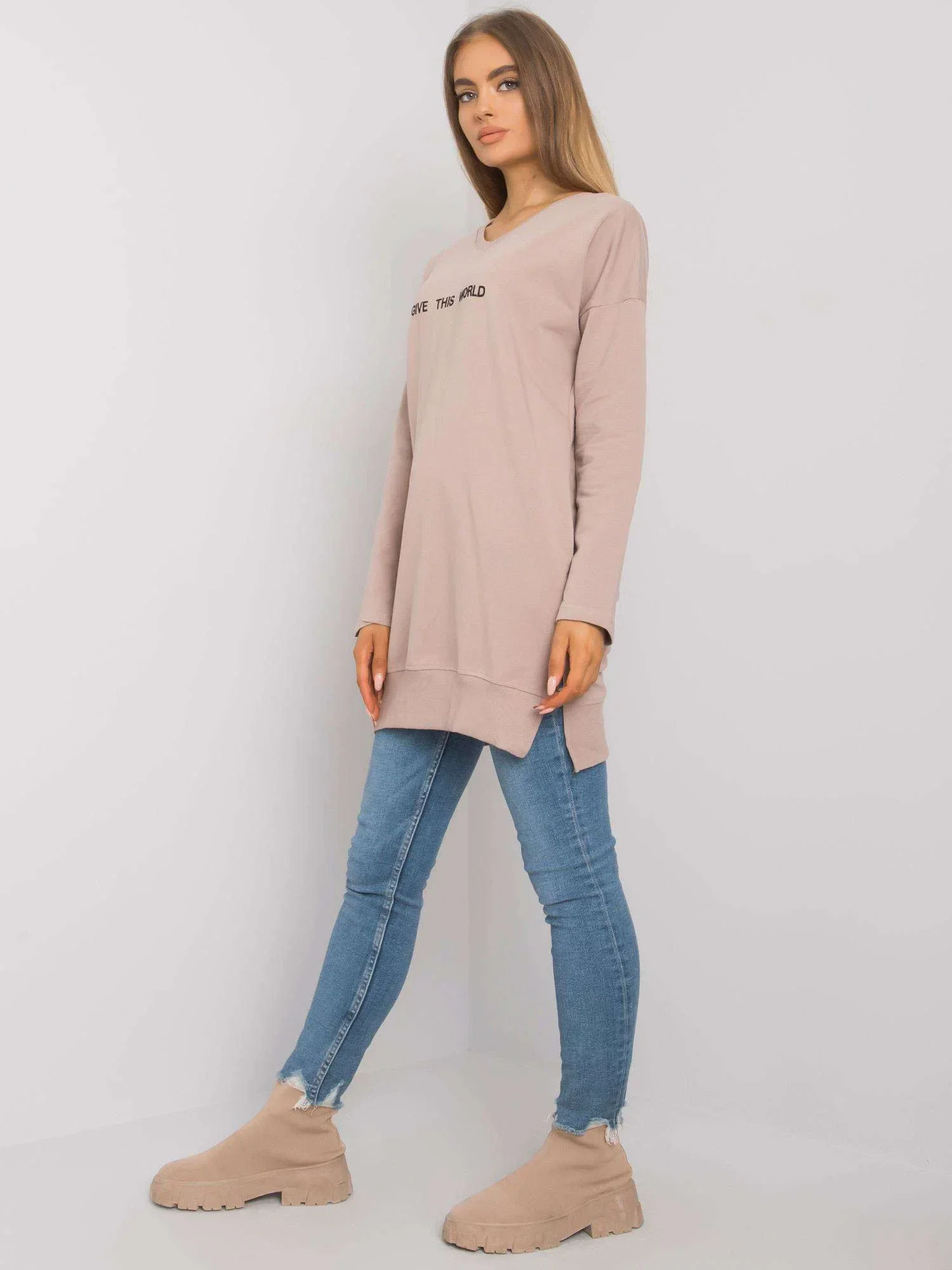 RUE PARIS Tmavě béžová bavlněná tunika pro ženy.