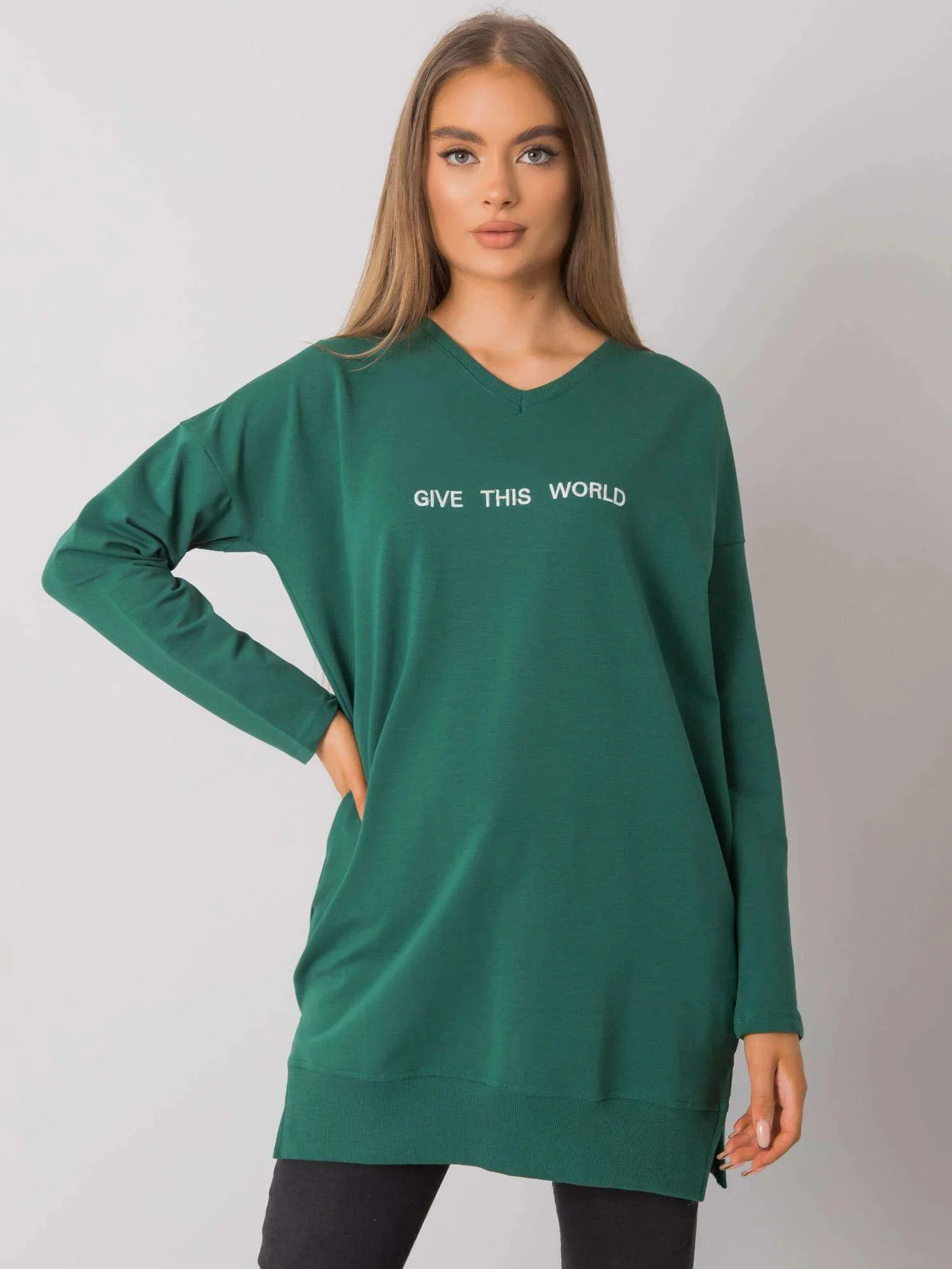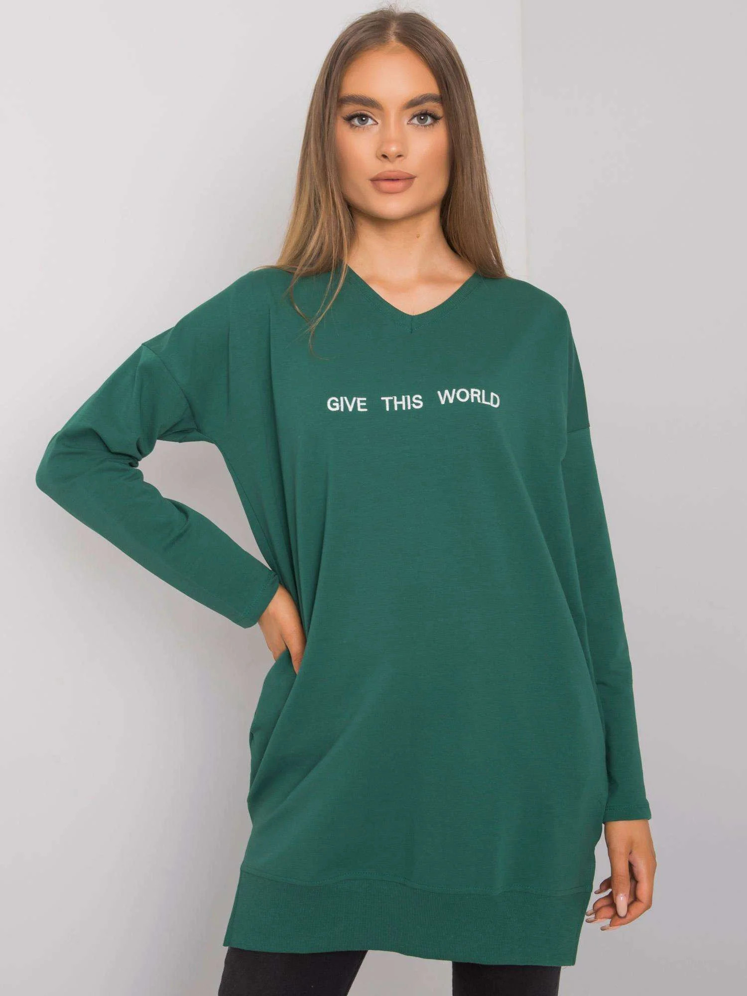 RUE PARIS Tmavě zelená bavlněná tunika pro ženy.