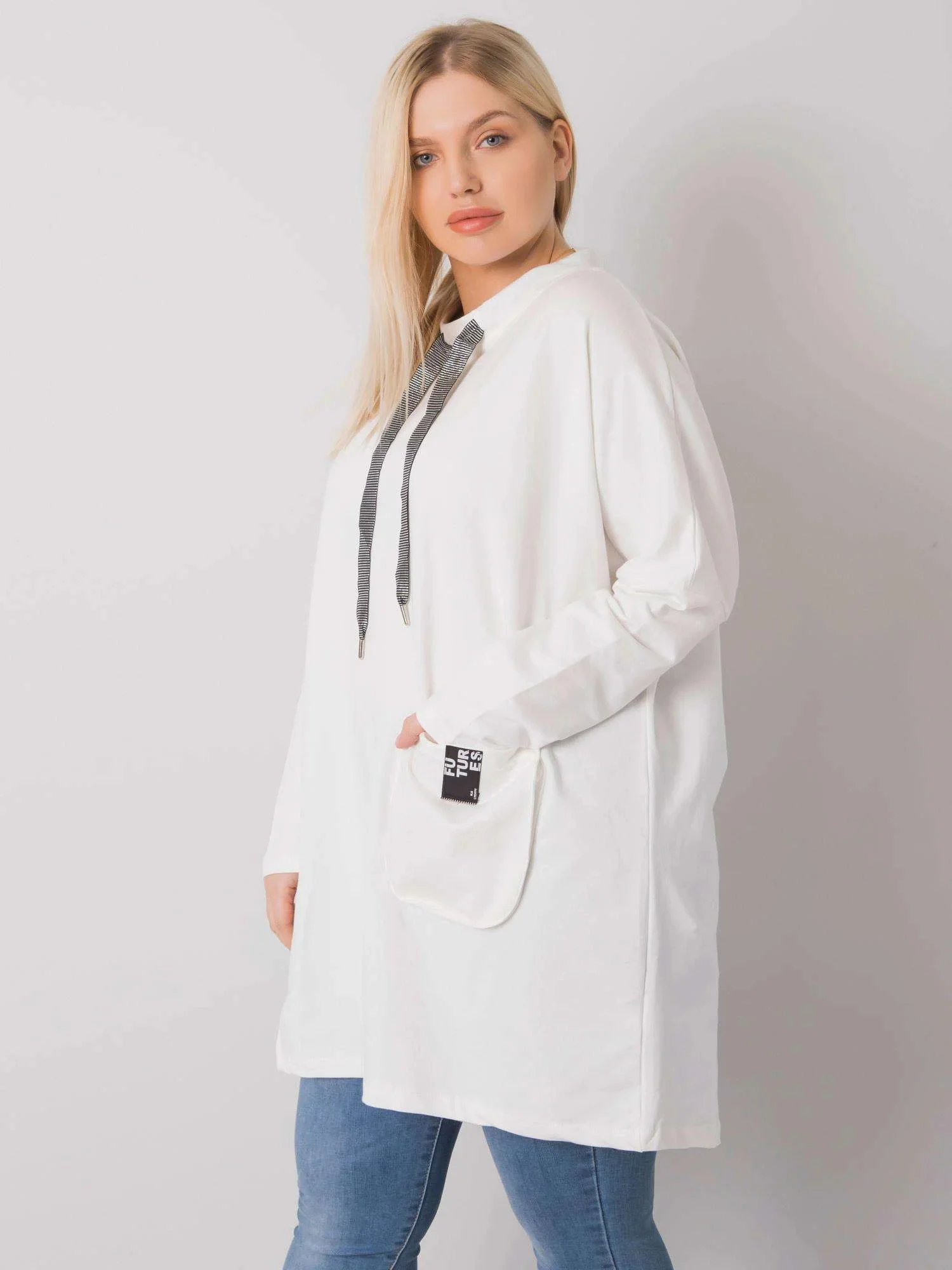 Tunika plus size v barvě ecru s kapsami.