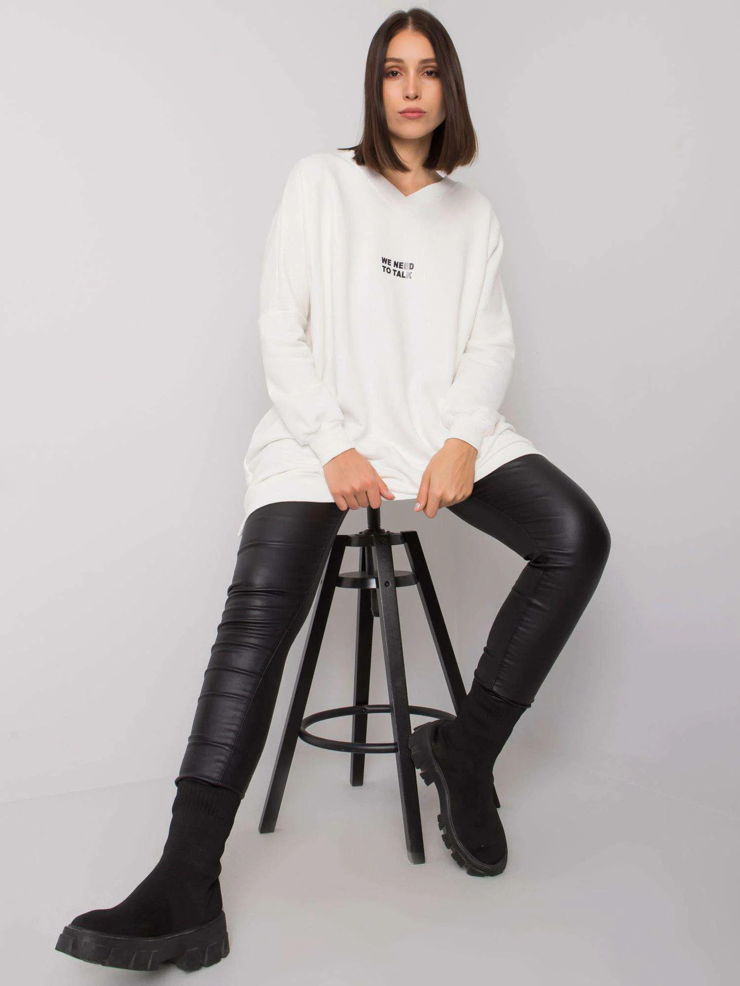 Modelka má na sobě jednu velikost. Rozměry modelky: výška 175 cm, poprsí 90 cm, pas 67 cm, boky 103 cm.