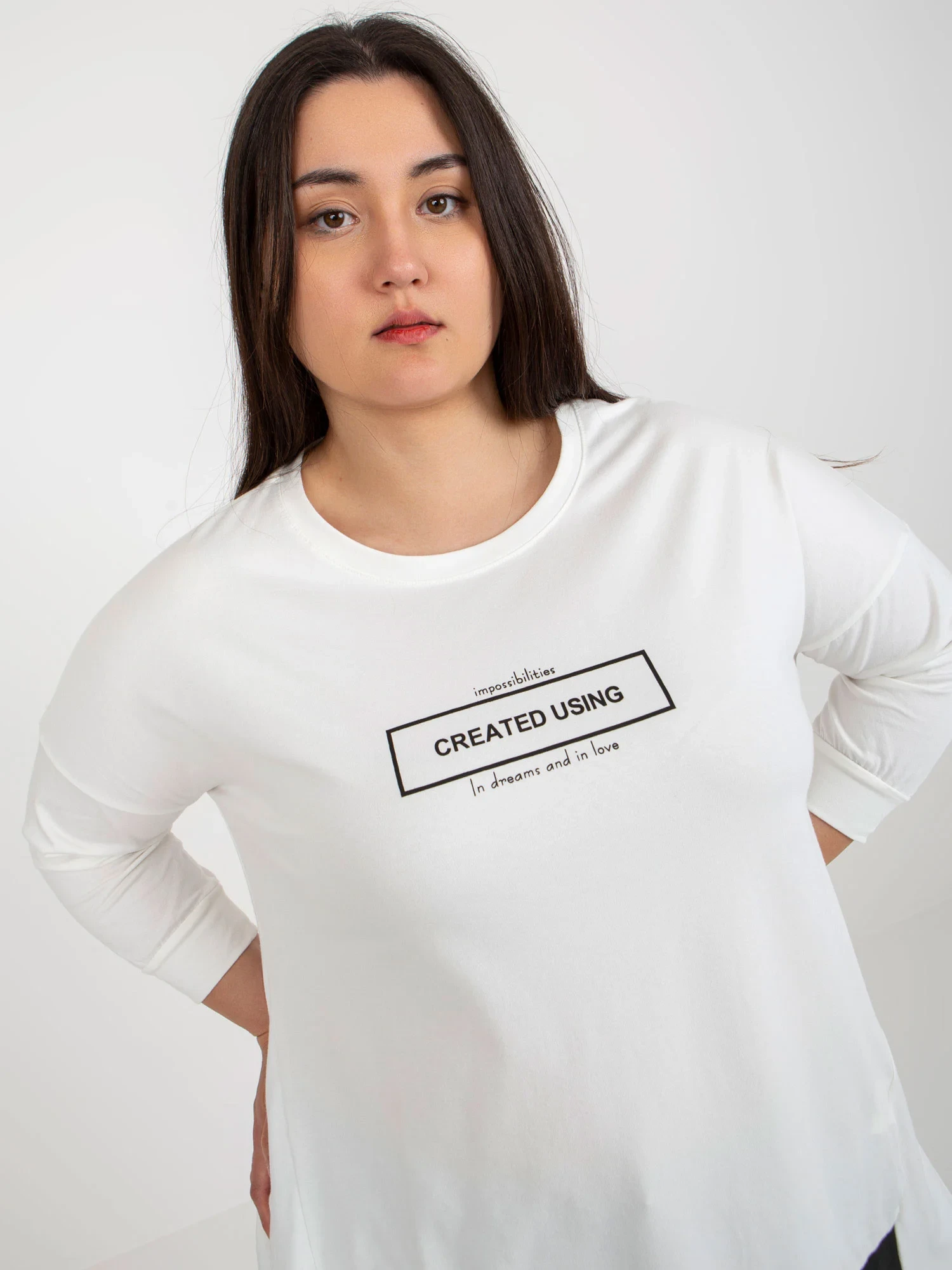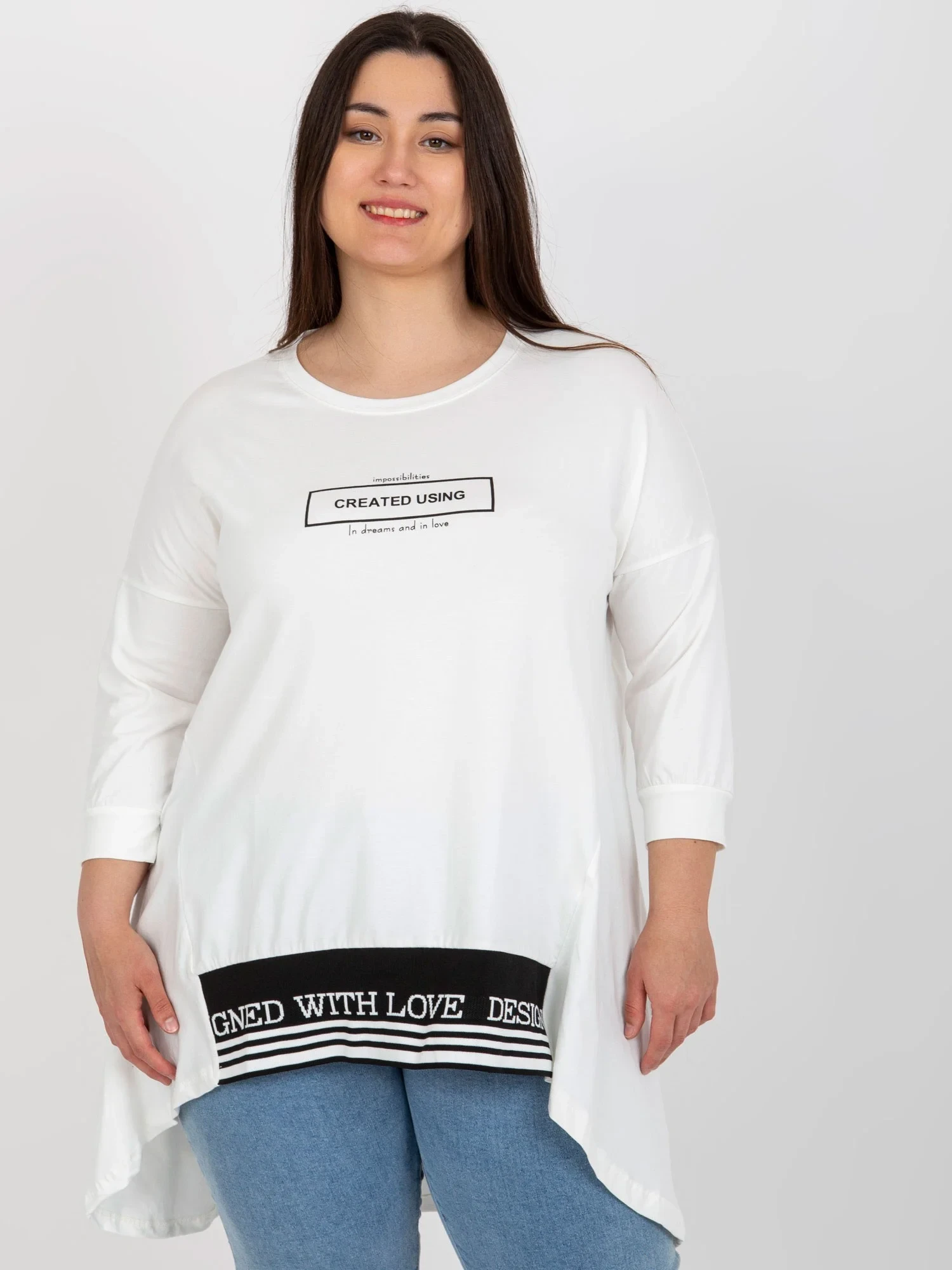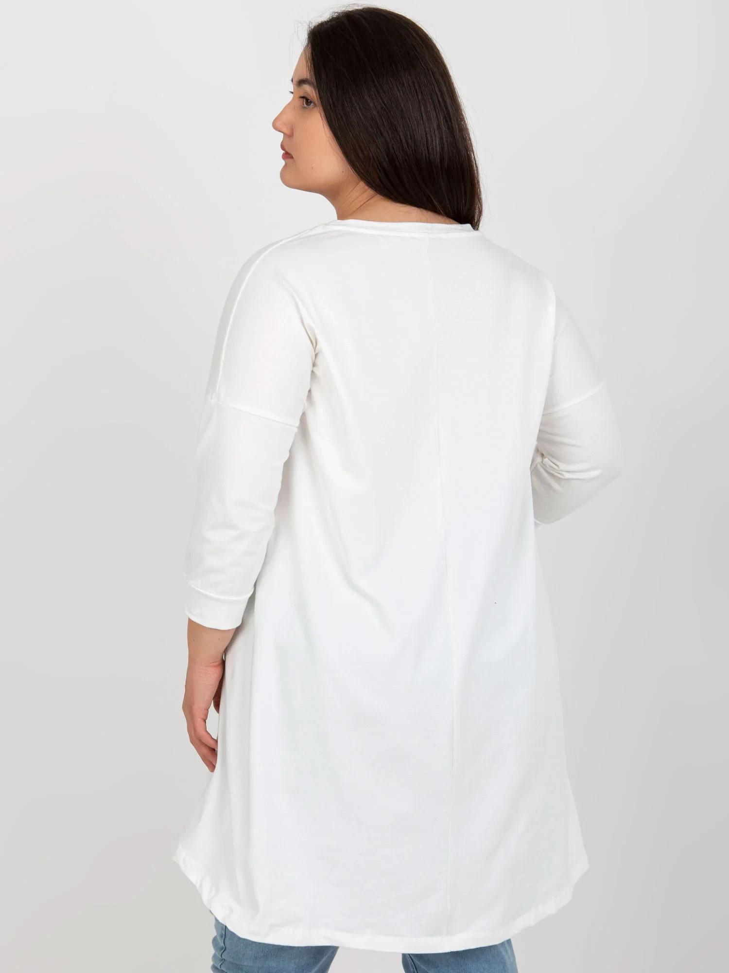 Ecru mikina plus size tunika s 3/4 rukávy .