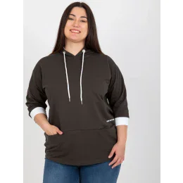 Khaki bavlněná mikina plus size s 3/4 rukávy .