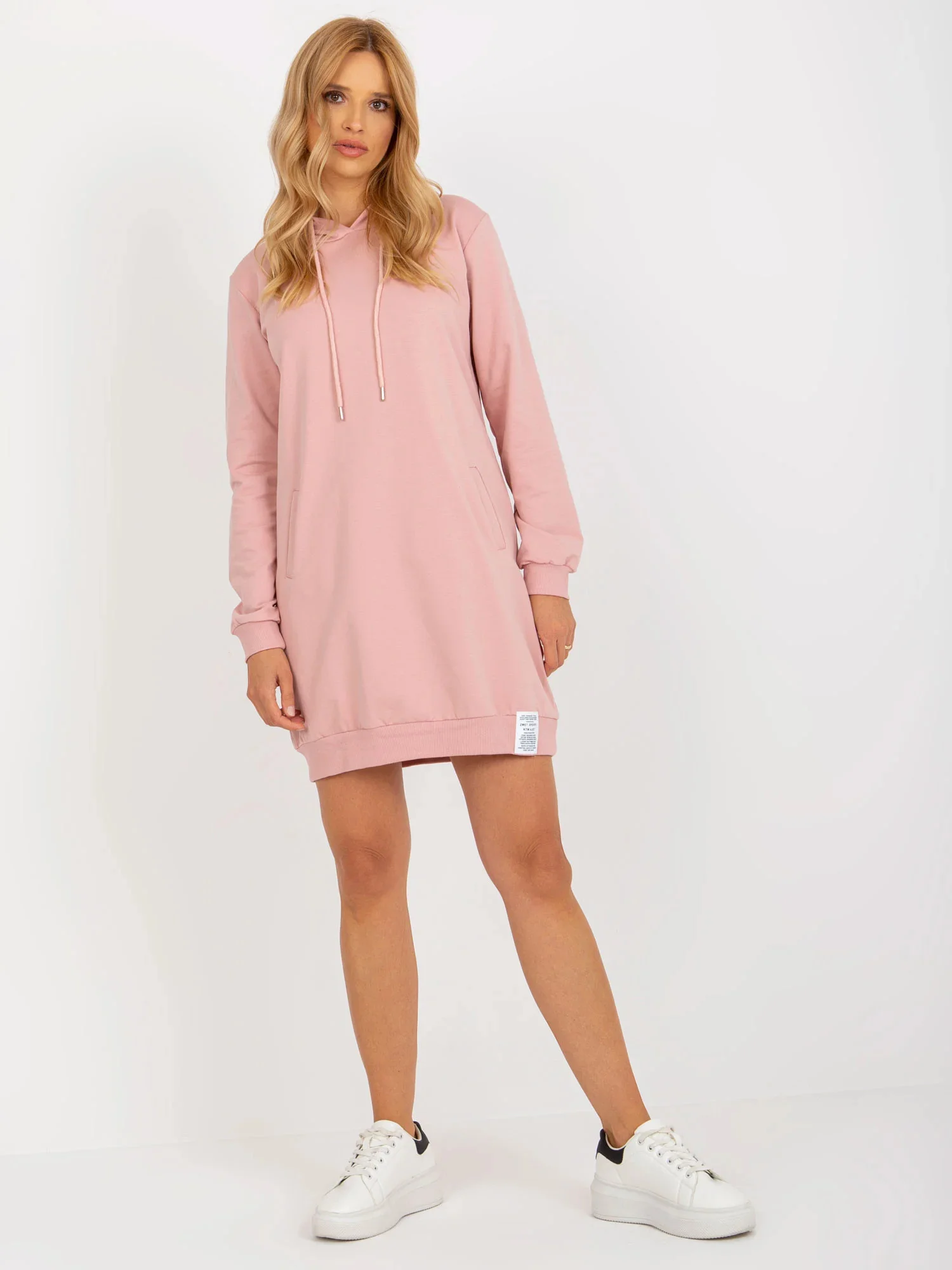 Světle růžové teplákové šaty s kapsami .