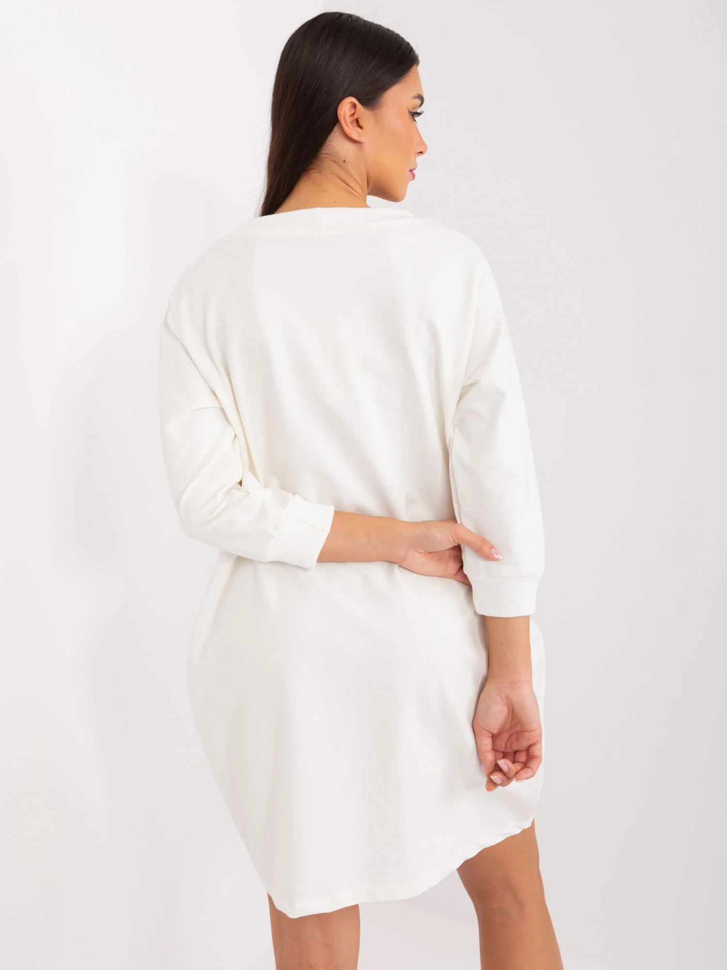 Wymiary sukienki w rozmiarze S/M mierzone na płasko: szerokość pod pachami - 56 cm, długość rękawa - 51 cm, długość całkowita - 85 cm.