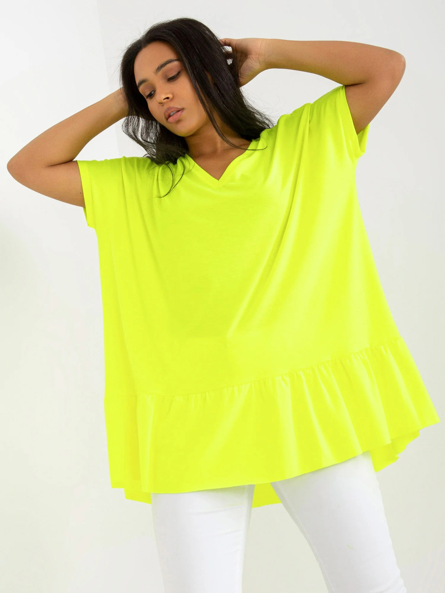 Fluo żółta codzienna tunika plus size z dekoltem w serek .