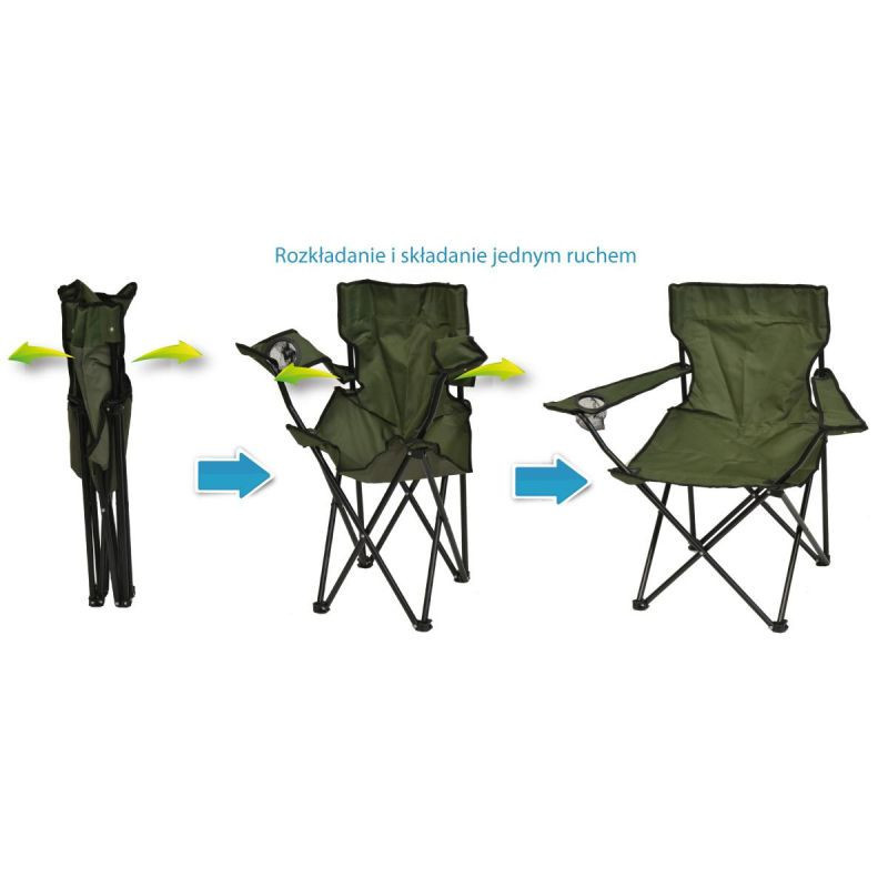 SKLÁDACÍTURISTICKÉ KŘESLO 50X50X80CM ZELENÉ je základem úspěšného kempování, dovolené, pobytu na pláži, u jezera nebo prostě na pozemku. Díky snadno použitelné konstrukci s pavoučími nohami je připraveno, kdykoli ho potřebujete, protože systém skládání a rozkládání je okamžitý. Materiál, z něhož jsou vyrobeny sedák a opěradlo, je odolný a nepromokavý, protože je odolný proti oděru, natažení a roztržení. Snadno se čistí, a pokud se ušpiní, stačí ho otřít vlhkým hadříkem. Ergonomický design křesla zajišťuje pohodlné sezení po mnoho hodin a pohodlné područky umožňují zaujmout pohodlnou polohu, která uleví vaší páteři. Rám křesla je vyroben z pevných a odolných ocelových trubek a vydrží zatížení až 100 kg!