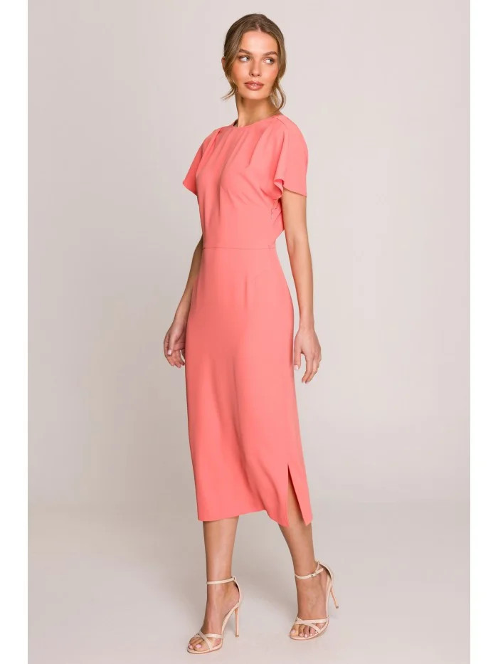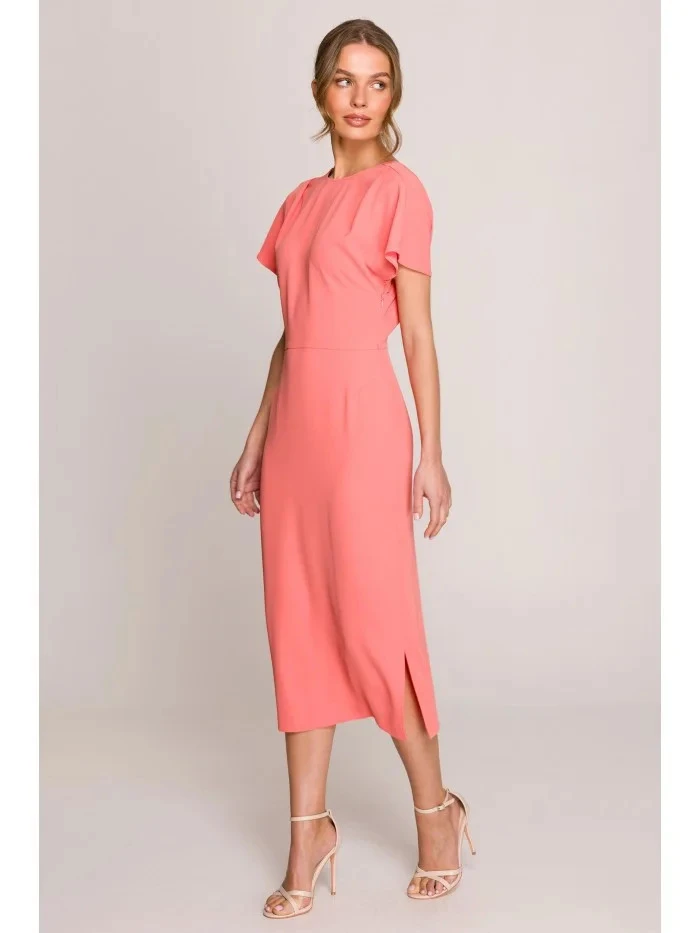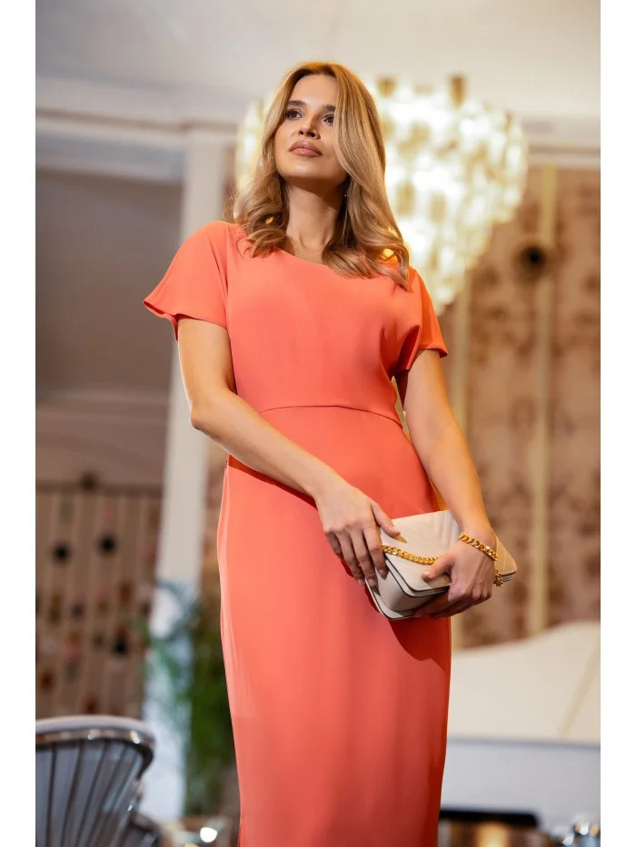 Tužkové šaty s rozparkem na boku model 21256878 oranžové - Stylové