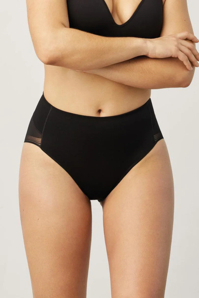 Klasyczne majtki Ysabel Mora w dwóch uniwersalnych kolorach — czarnym i beżowym — to idealny wybór dla kobiet stawiających na komfort i dyskretną elegancję. Wysoki stan delikatnie otula talię i zapewnia stabilne dopasowanie, a pełniejszy krój z zabudowanym tyłem gwarantuje wygodę w każdej sytuacji.