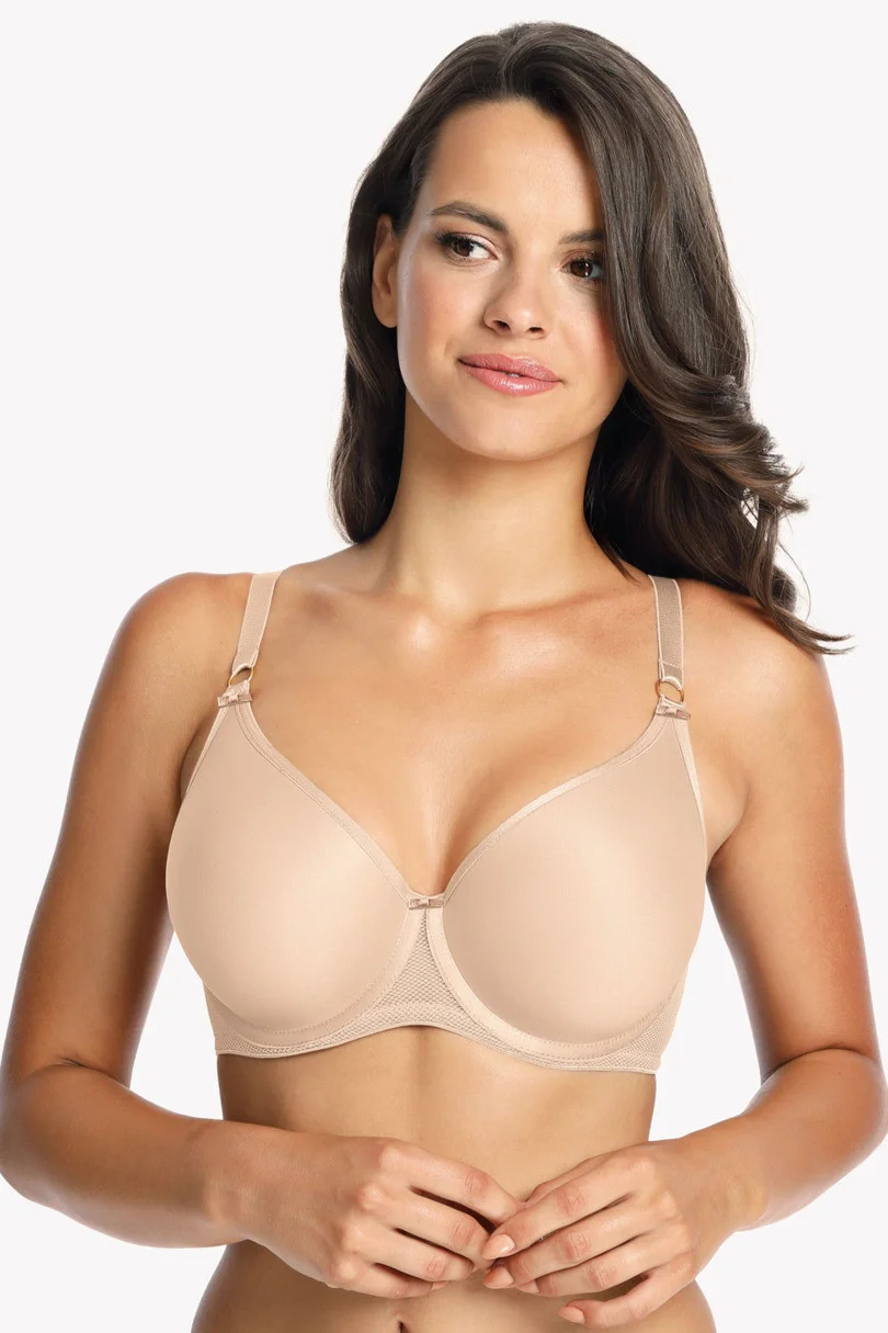 Vyztužená podprsenka s tepelně tvarovanými košíčky, bez švů na košíčcích, bez bočních kostic.