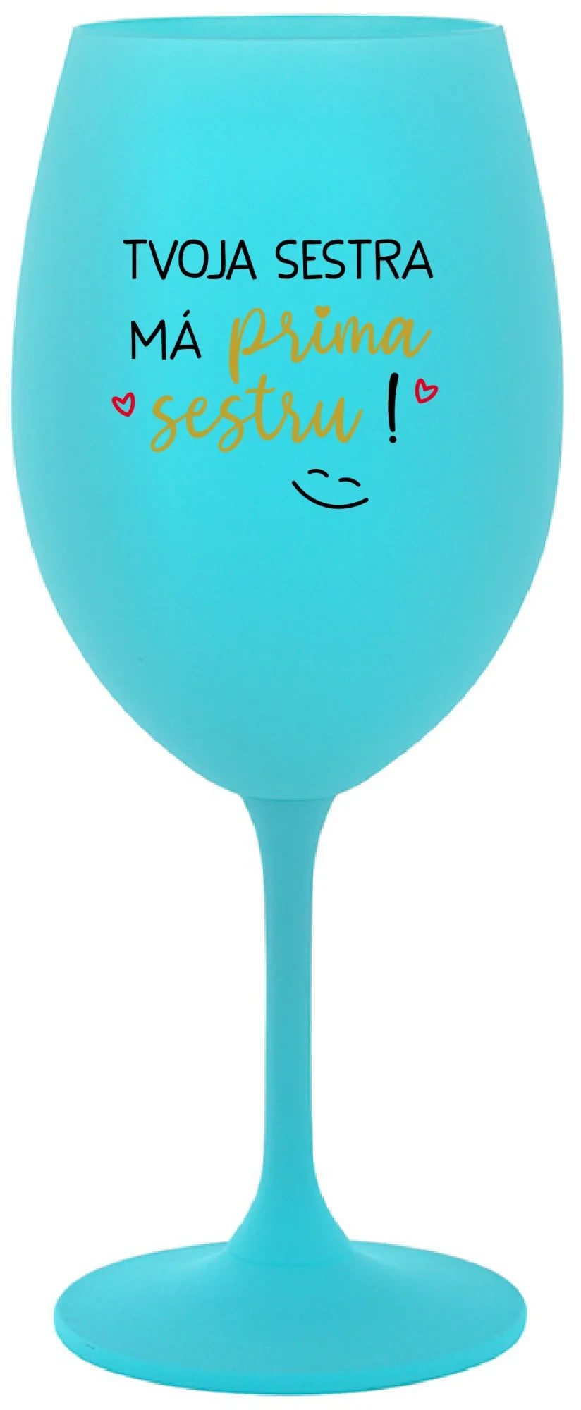 TVOJA SESTRA MÁ PRIMA SESTRU! - tyrkysový pohár na víno 350 ml