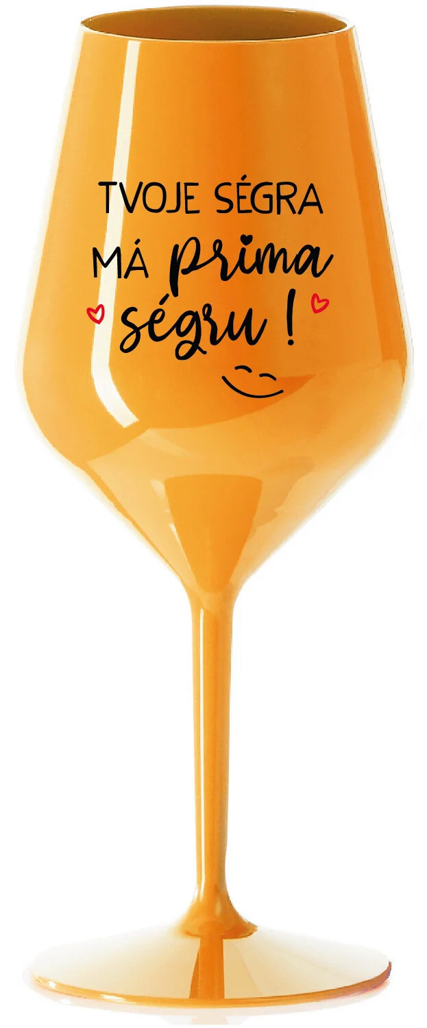 TVOJE SÉGRA MÁ PRIMA SÉGRU! - oranžová nerozbitná sklenice na víno 470 ml
