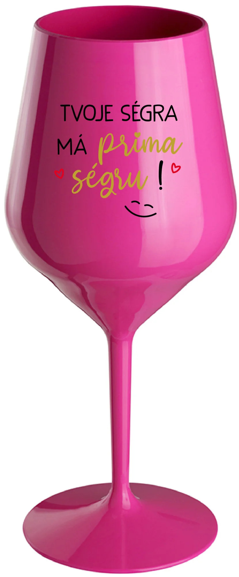 TVOJE SÉGRA MÁ PRIMA SÉGRU! - růžová nerozbitná sklenice na víno 470 ml