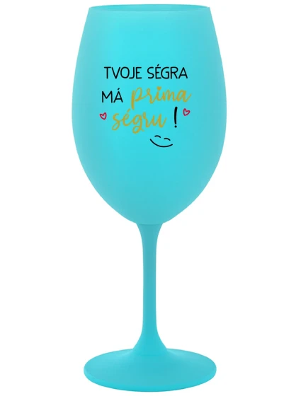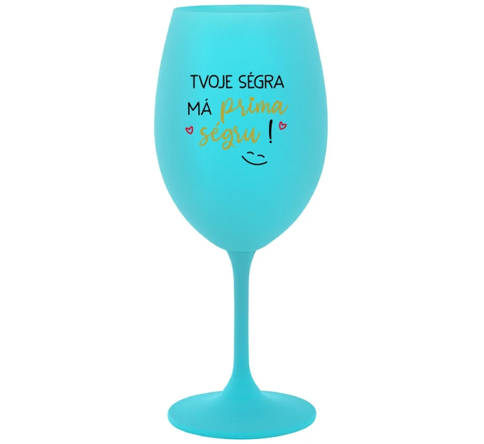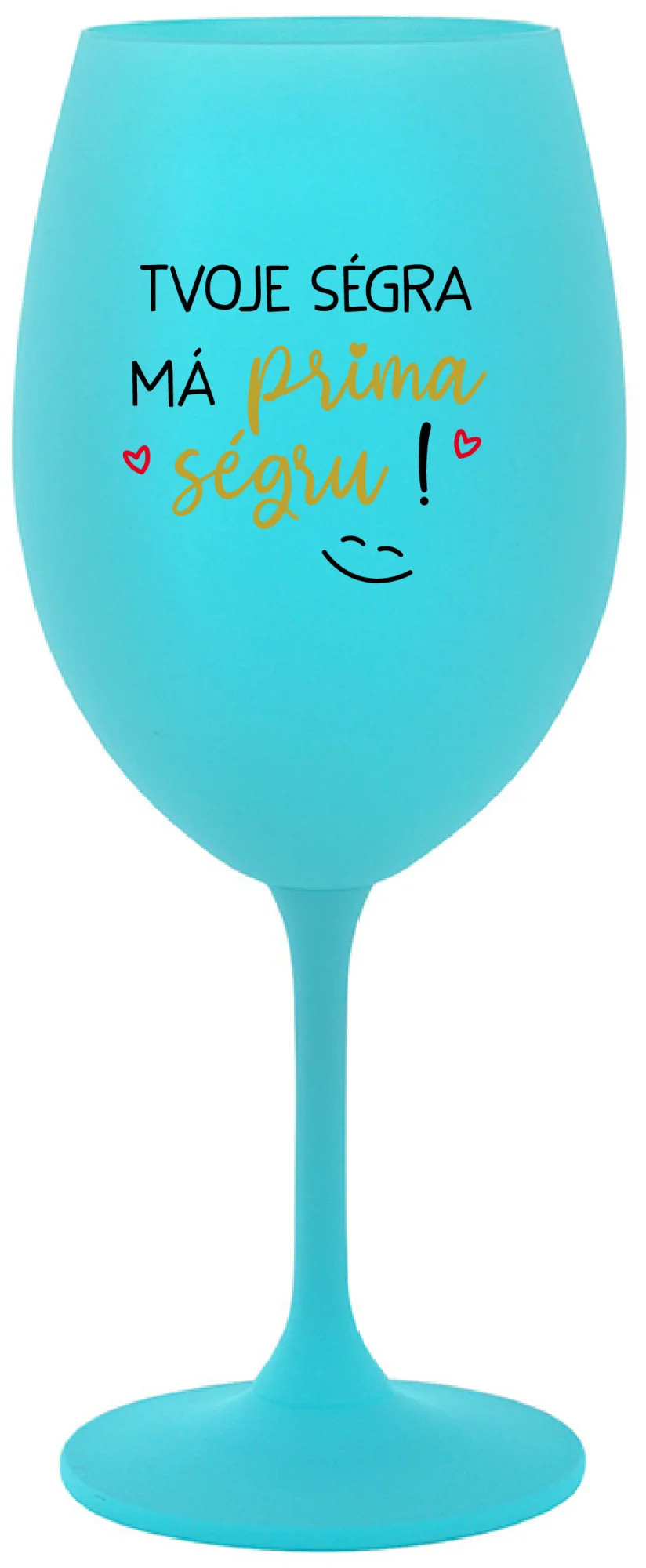 TVOJE SÉGRA MÁ PRIMA SÉGRU! - tyrkysová sklenice na víno 350 ml