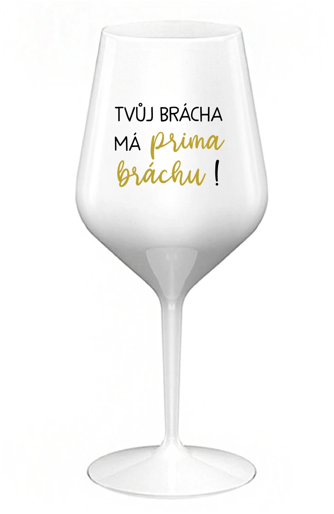 TVŮJ BRÁCHA MÁ PRIMA BRÁCHU! - bílá nerozbitná sklenice na víno 470 ml