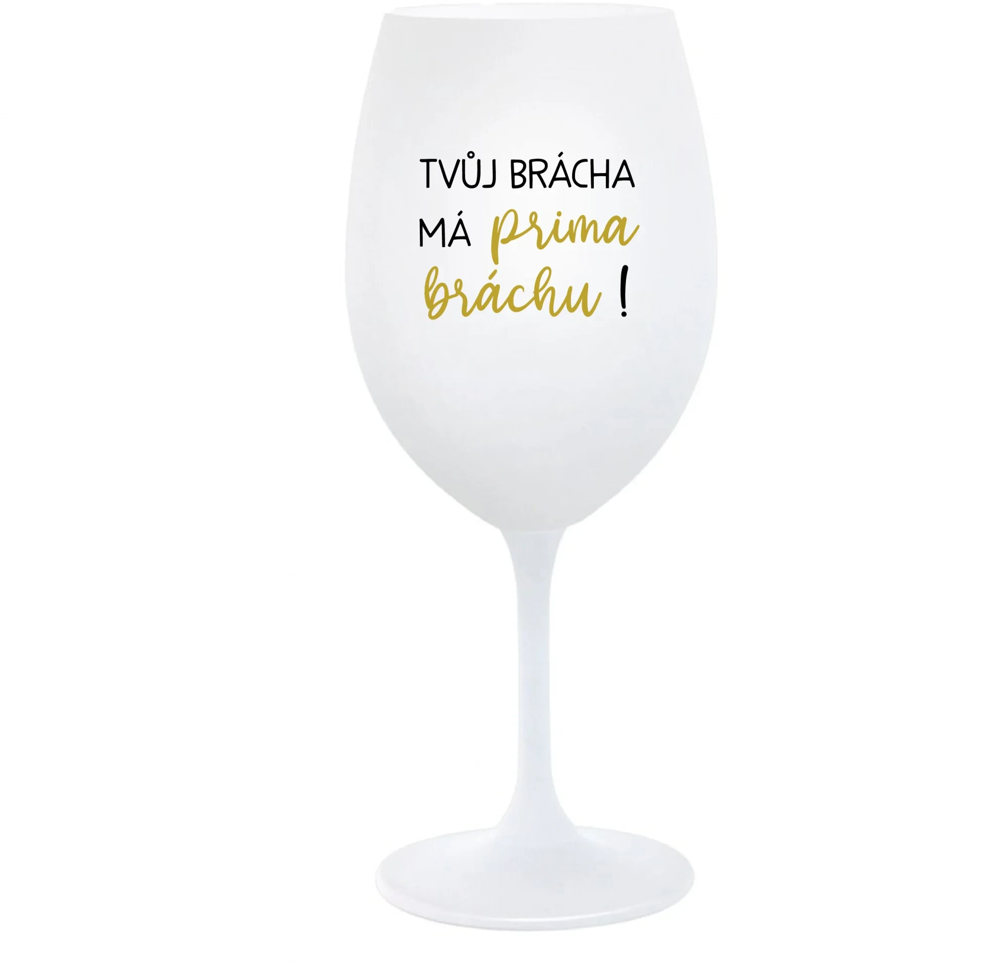 TVŮJ BRÁCHA MÁ PRIMA BRÁCHU! - bílá sklenice na víno 350 ml