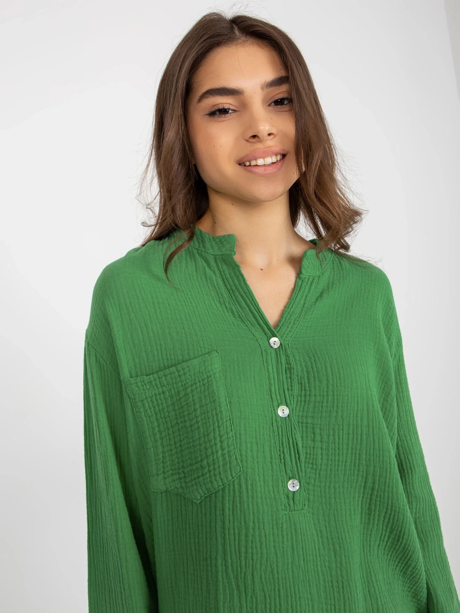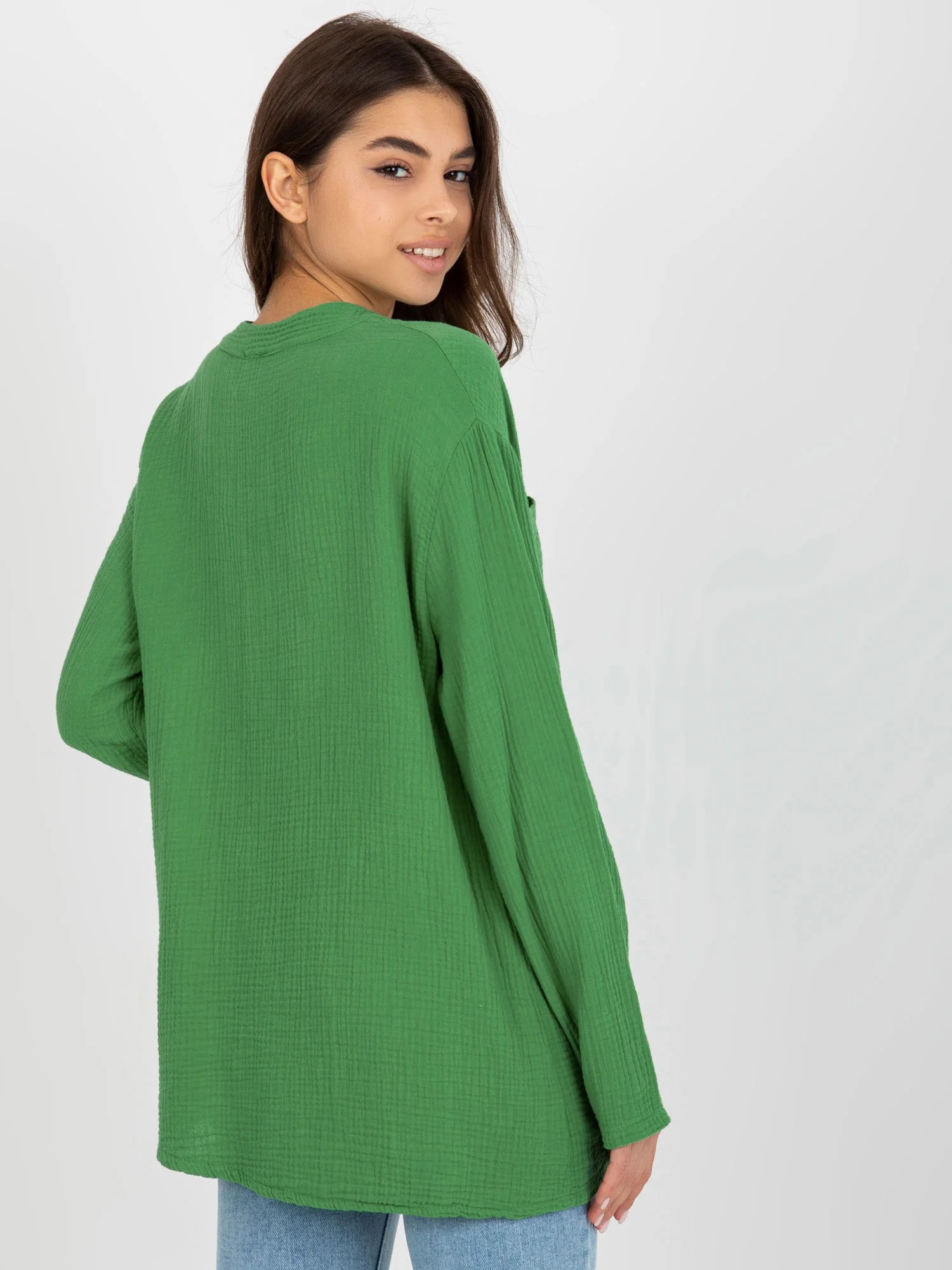 Zelená košilová halenka volného střihu značky OCH BELLA.