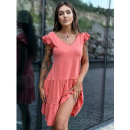 Dámské korálové bavlněné šaty s volánem MAYFLIES .