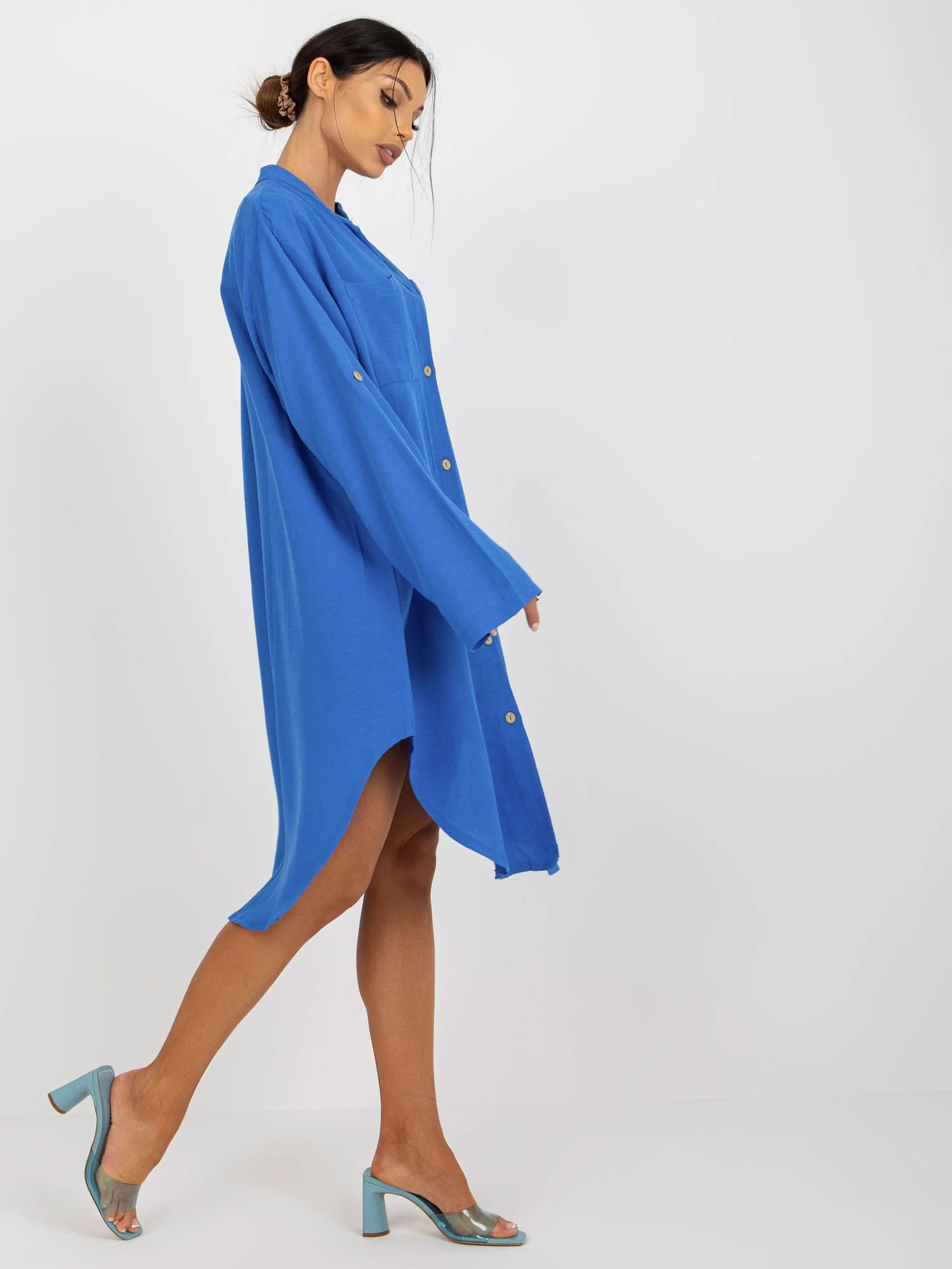 Modré smirkové šaty s kapsami OCH BELLA .