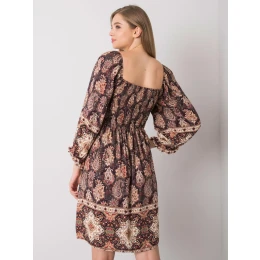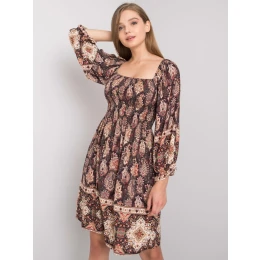OCH BELLA Tmavě hnědé vzorované šaty.