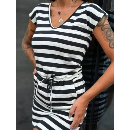 Ecru-černé pruhované bavlněné šaty MAYFLIES.