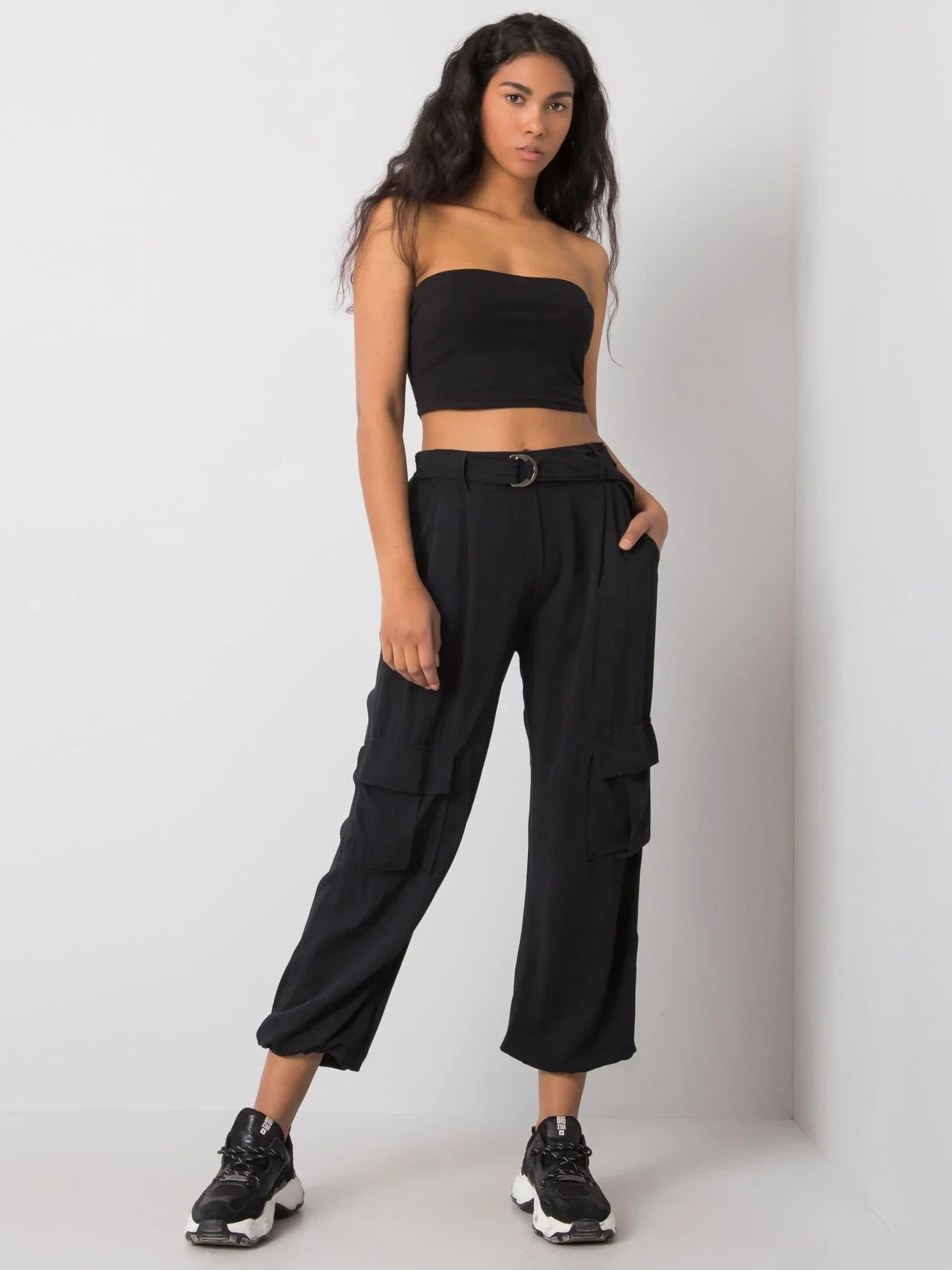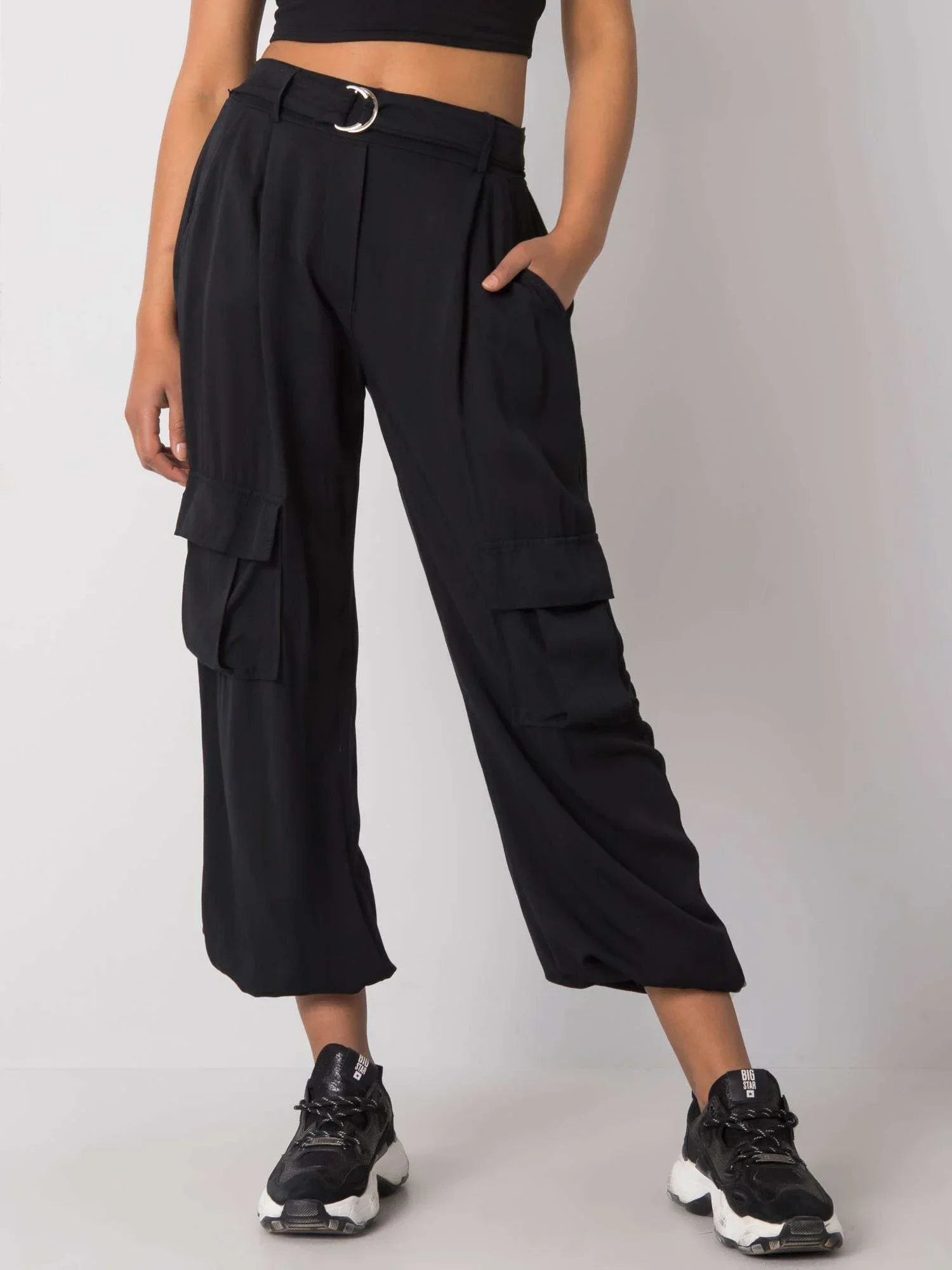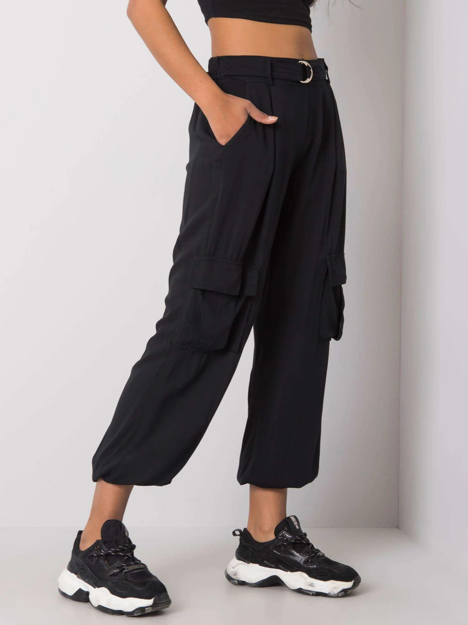 OCH BELLA Černé dámské kalhoty s kapsami.
