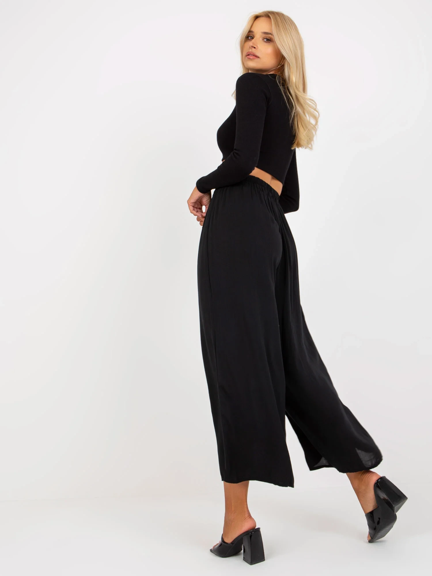 Rozměry kalhot ve velikosti S měřené na plocho: šířka v pase - 32 cm, výška v pase - 37 cm, celková délka - 96 cm